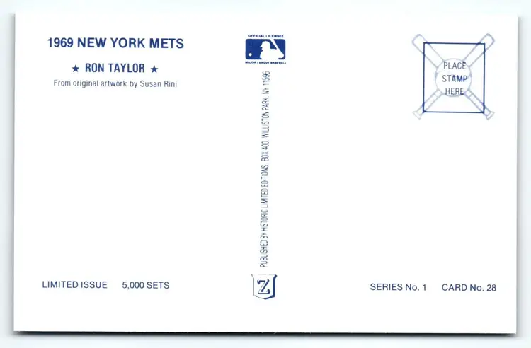 Unit of Sale: Single Unit Artist: Susan Rini Occasion: Baseball Signed: Yes Size: Standard (5.5 x 3.5 in) Year Manufactured: 1969 Material: Paper Original/Licensed Reprint: Original Brand/Publisher: Historic Limited Editions Subject: Baseball Type: Printed (Lithograph) Unit Type: Unit Era: Chrome (c. 1939-present) Theme: Sports, New York Mets, Mets, Baseball Postcard, Rini, NY Mets, Limited Edition, Shea Stadium Featured Refinements: Baseball Postcard Time Period Manufactured: 1960-1969 Country/Region of Manufacture: United States Postage Condition: Unposted