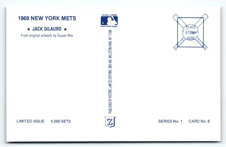 Unit of Sale: Single Unit Artist: Susan Rini Occasion: Baseball Signed: Yes Size: Standard (5.5 x 3.5 in) Year Manufactured: 1969 Material: Paper Original/Licensed Reprint: Original Brand/Publisher: Historic Limited Editions Subject: Baseball Type: Printed (Lithograph) Unit Type: Unit Era: Chrome (c. 1939-present) Theme: Sports, New York Mets, Mets, Baseball Postcard, Rini, NY Mets, Limited Edition, Shea Stadium Featured Refinements: Baseball Postcard Time Period Manufactured: 1960-1969 Country/Region of Manufacture: United States Postage Condition: Unposted