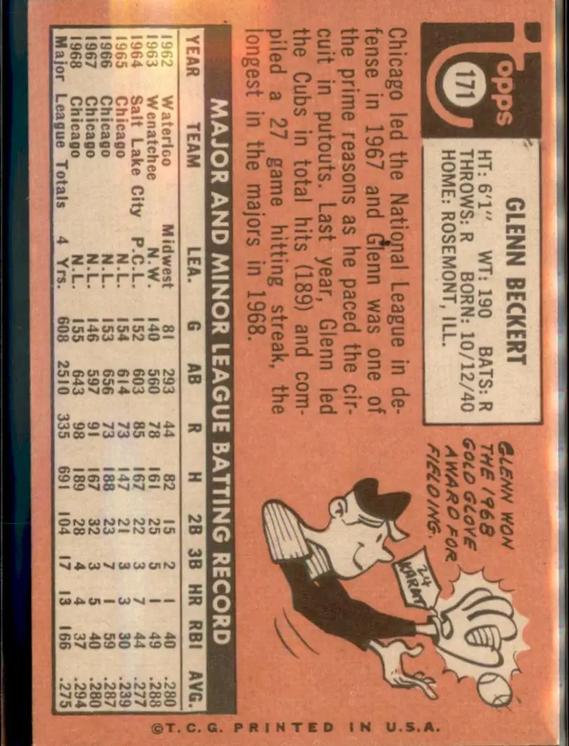 1969 Topps #171 Glenn Beckert - (pk3) - Chicago Cubs