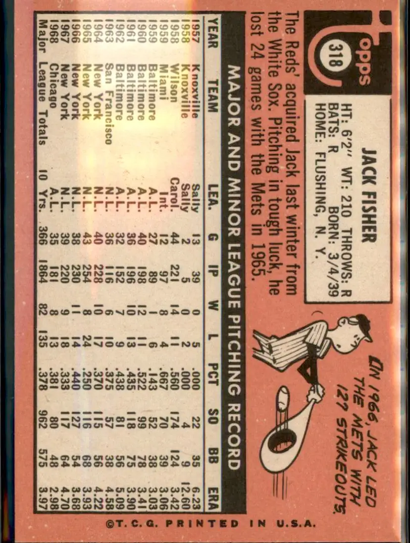 1969 Topps #318 Jack Fisher - (pk3) - Cincinnati Reds