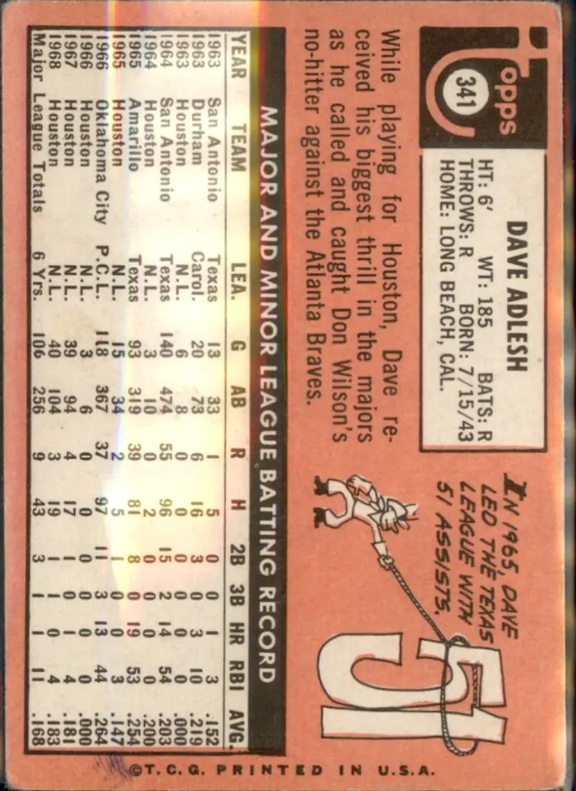 1969 Topps #341 Dave Adlesh - (pk3) - St. Louis Cardinals