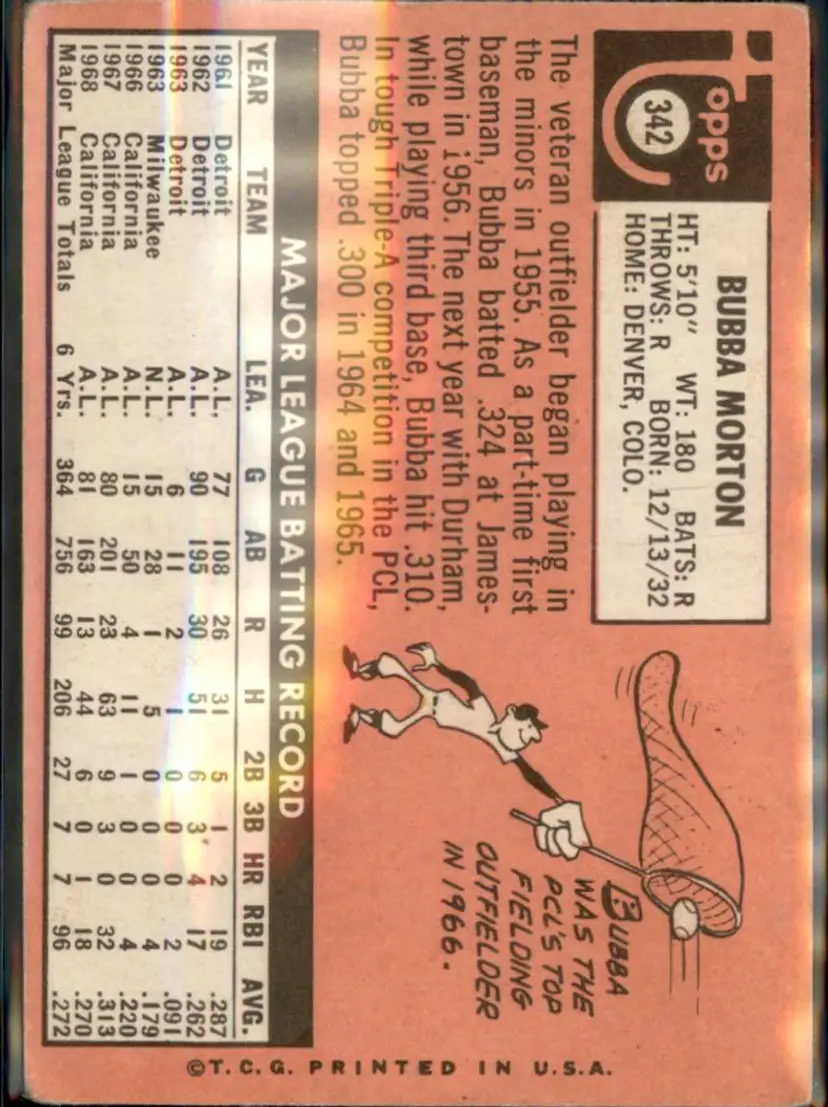 1969 Topps #342 Bubba Morton - (pk3) - California Angels