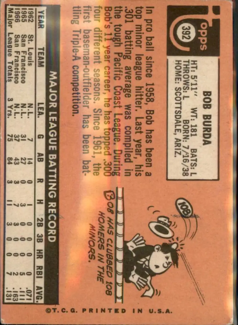 1969 Topps #392 Bob Burda - (pk3) - San Francisco Giants
