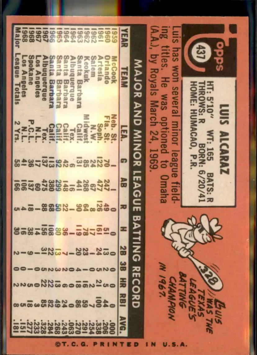 1969 Topps #437 Luis Alcaraz - (pk3) - Kansas City Royals