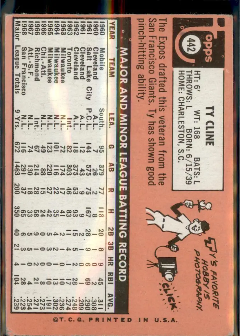 1969 Topps #442 Ty Cline - (pk3) - Montreal Expos