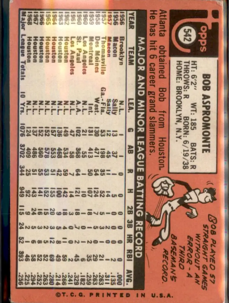 1969 Topps #542 Bob Aspromonte - (pk3) - Atlanta Braves