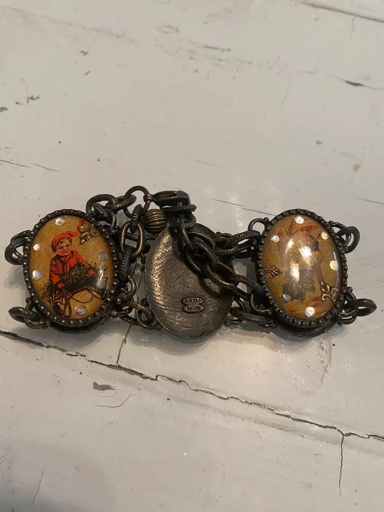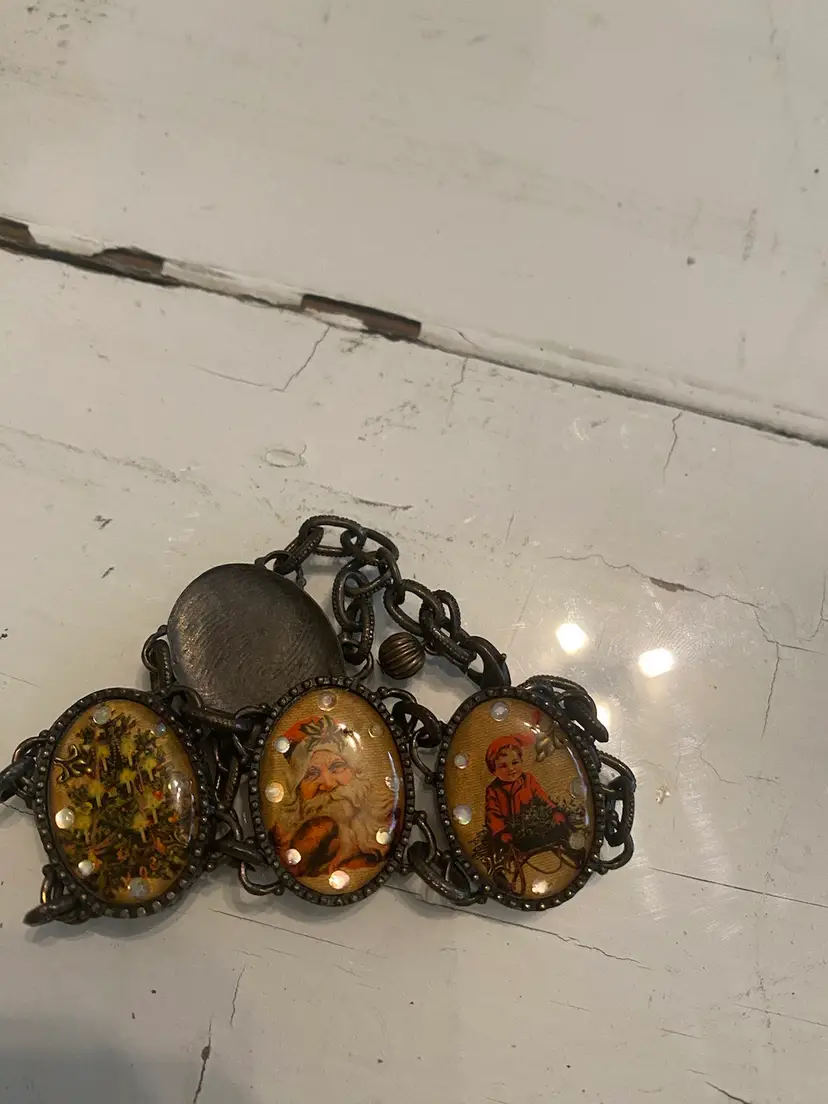 1970's Avon Bracelet, Christmas Link Bracelet, Victorian Christmas Scene Panels, Signed. Christmas Bracelet Gift, Victorian Panel Bracelet