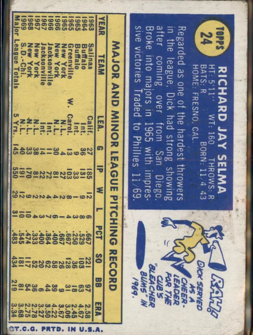 1970 Topps #24 Dick Selma - (pk3) - Philadelphia Phillies