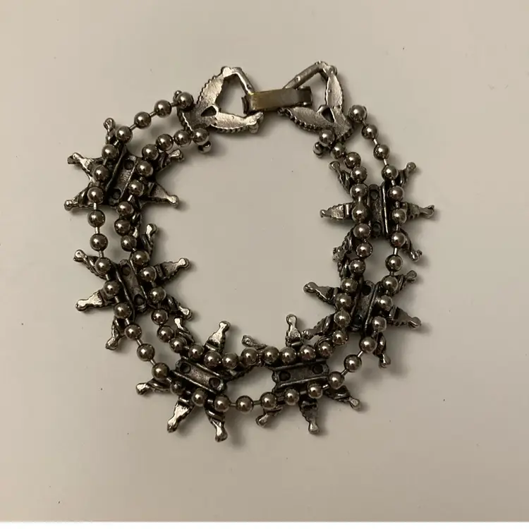 1970’s faux turquoise southwestern petite point style ball chains link bracelet. Fold over closte. Bracelet measures 6 3/4” long.