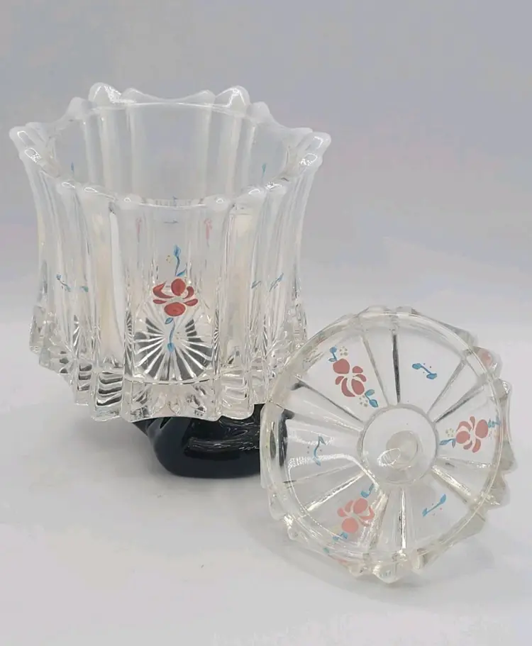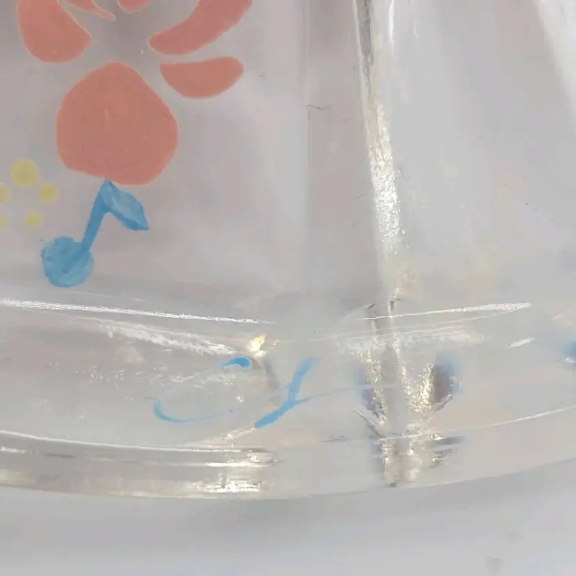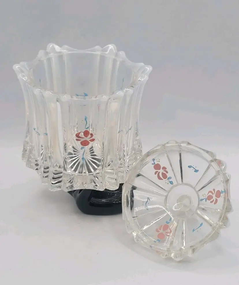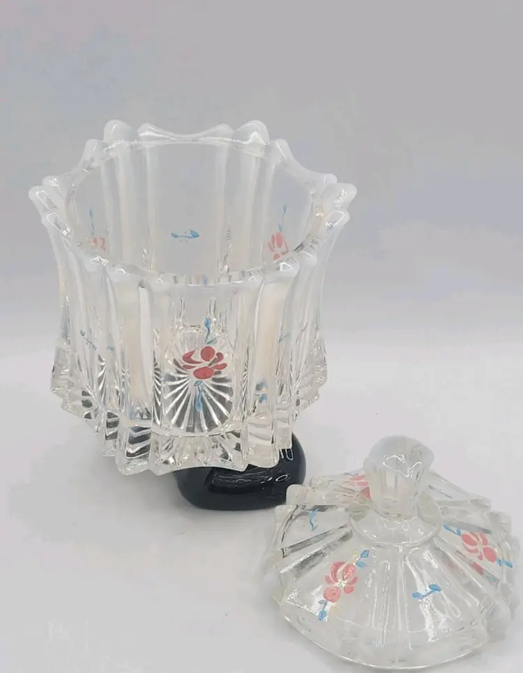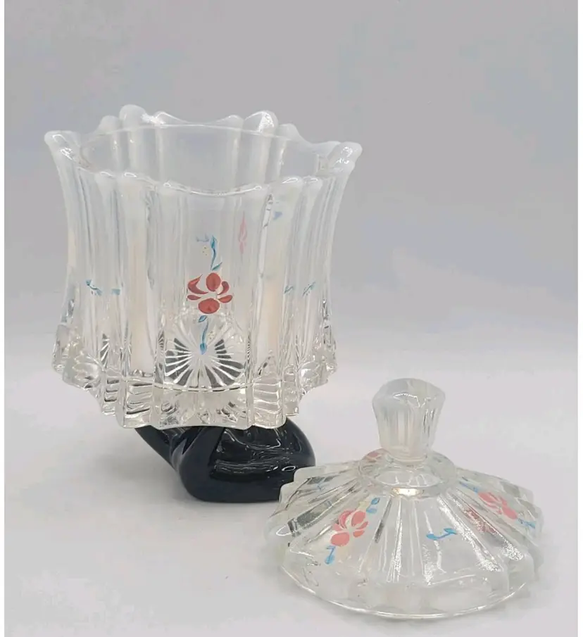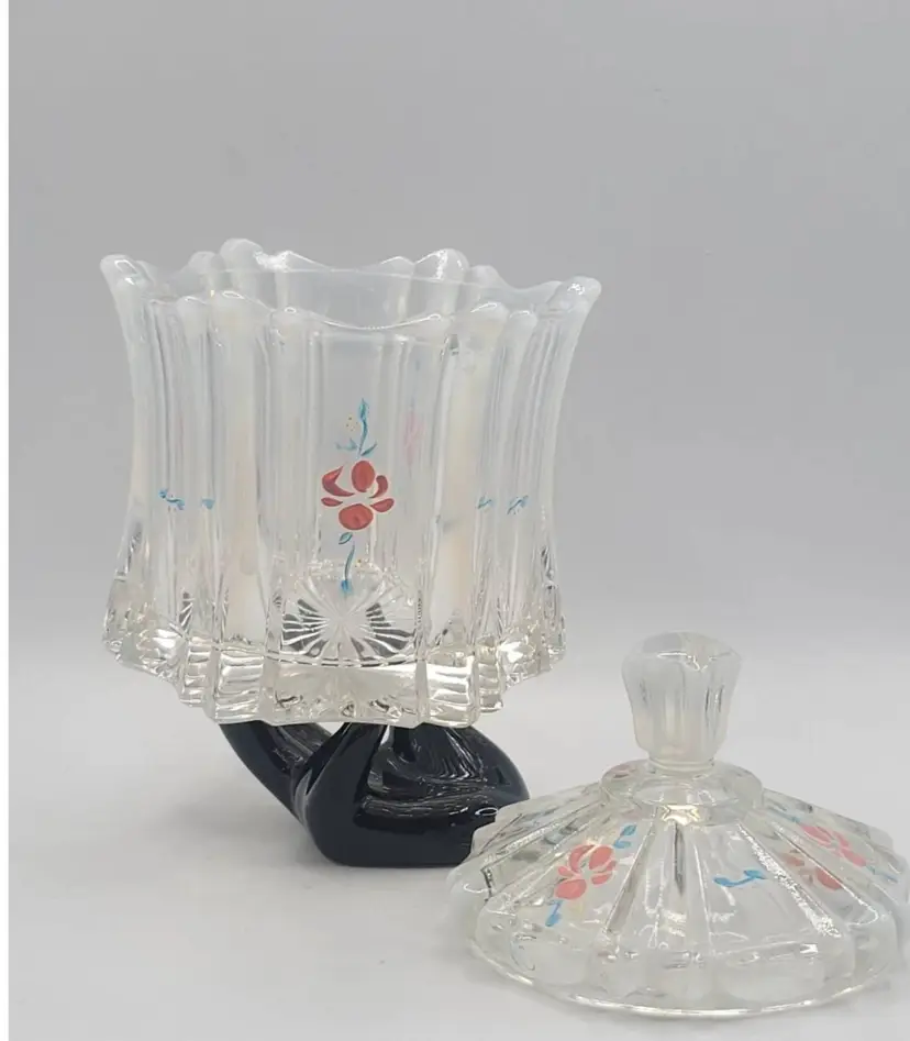 1970s Fenton Opalescent Covered Candy Dish Hand Painted Flowers Signed by Artist Very good condition. *Small chip on inside lid. Really cant see it unless looking for it. See last picture. No cracks or breaks. Minimal surface wear. View pictures Approx. 6.25" H X 4.75" W