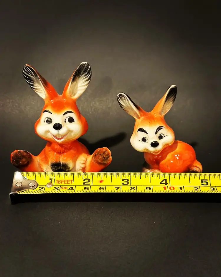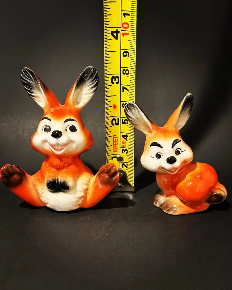 Condition: both bunnies have some crazing. No other issues Dimensions: ~2” wide x 2.5-3” tall