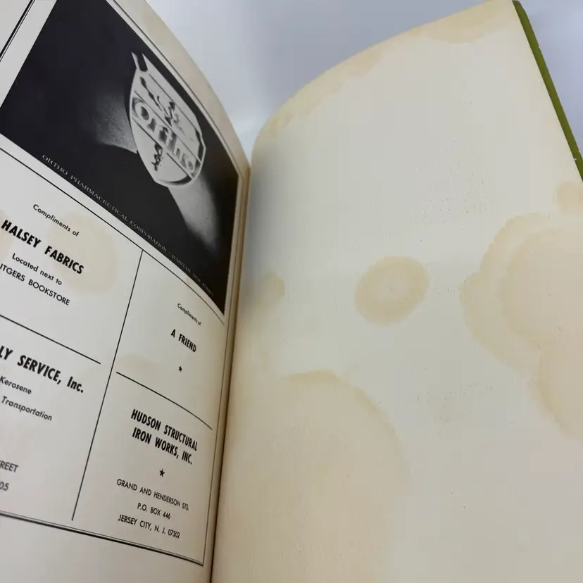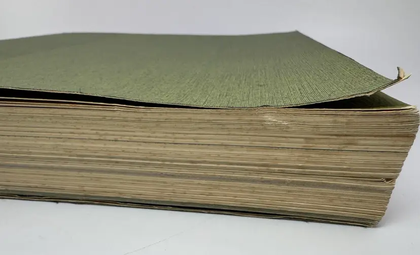 • NOTE: Cover and pages show edge wear consistent with age. There is a crease in the front right corner, see photos. Also , wear on the back cover corner. Yellowing and staining on the some of the pages, most particularly on the pages closest to the covers.