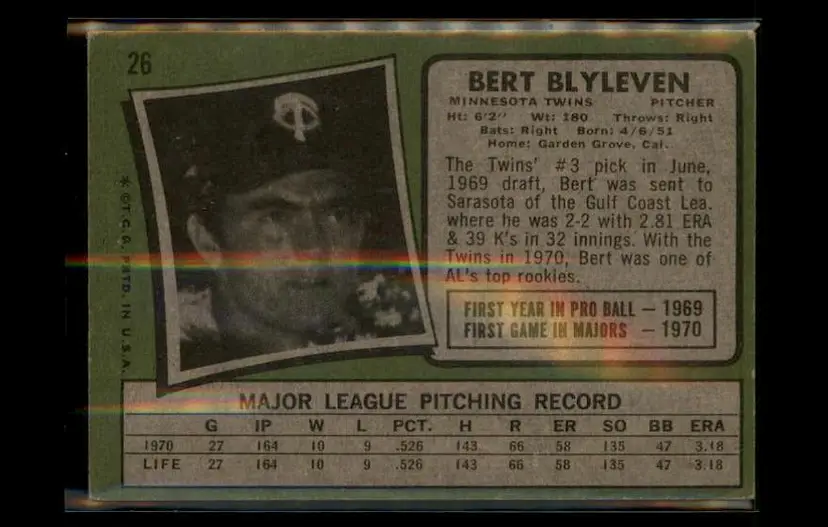 1971 Topps #26 Bert Blyleven - (pk3) - Minnesota Twins