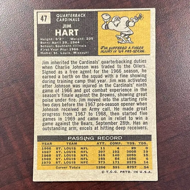 1971 Topps Jim Hart. The corners are dinged. Take a look at the pictures for more details.