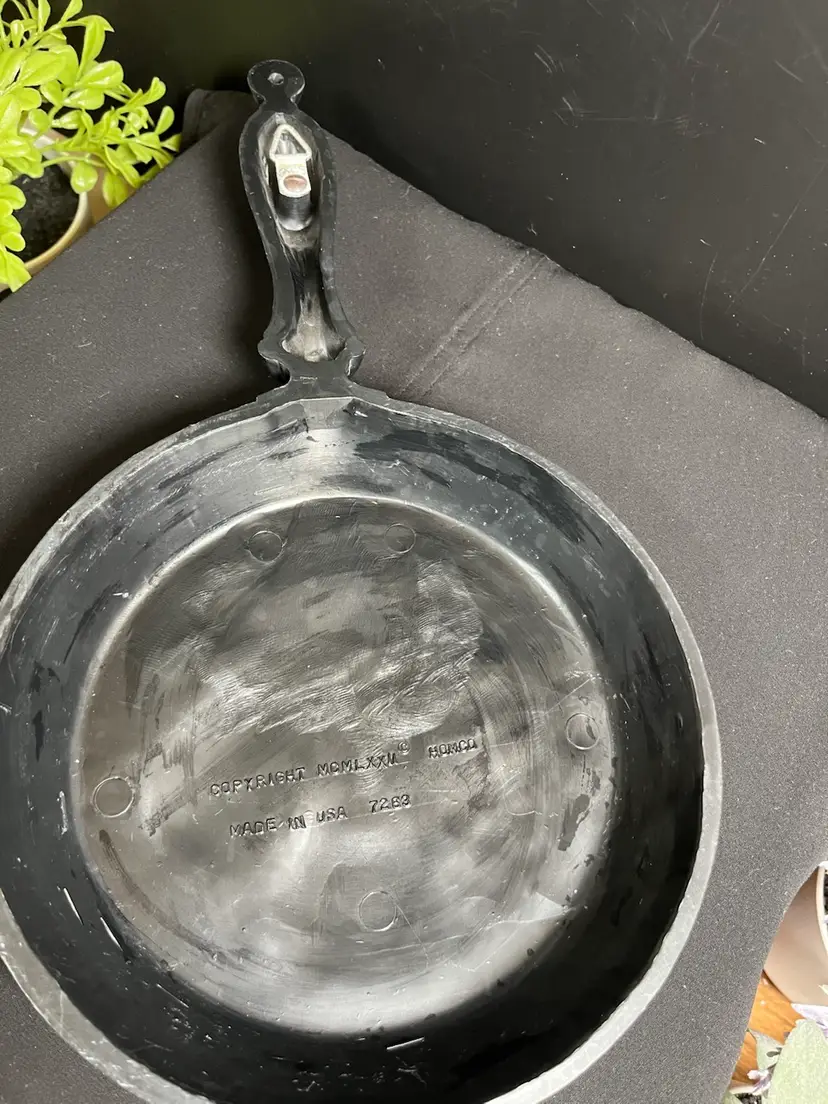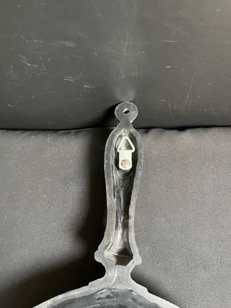 There are no call outs on this. Would be cute in a kitchen setting or perhaps in a rustic cabin w/ fireplace setting. Has a hanger. Measures approx 13"L, 7.25" W, 1.25" Deep, 4.9 Oz