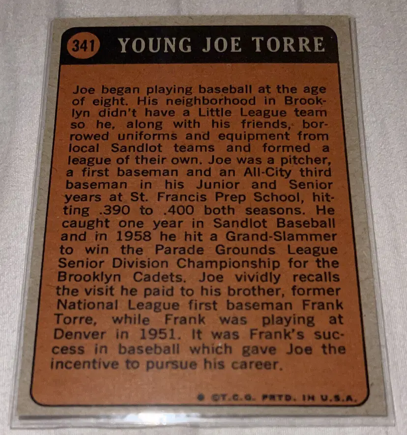 Type: Sports Trading Card Set: 1972 Topps Player/Athlete: Joe Torre Sport: Baseball Manufacturer: Topps Features: Base Set Team: St. Louis Cardinals Season: 1972 League: Major League Baseball (MLB) Card Number: 341