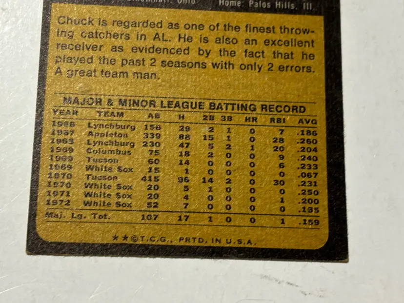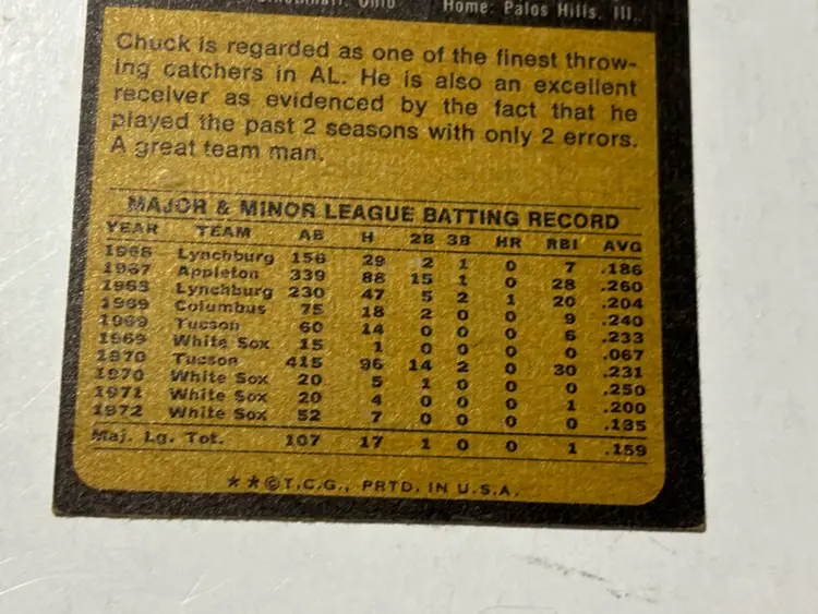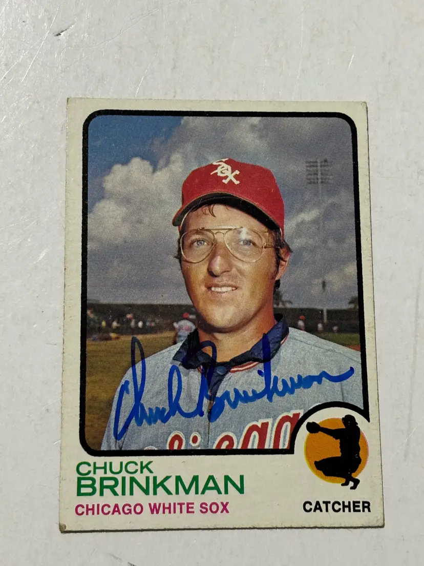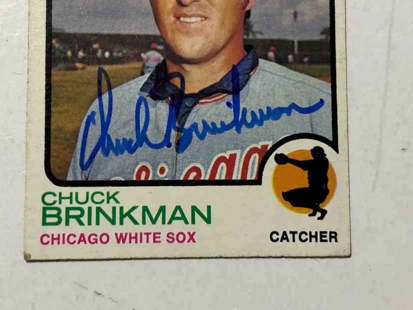 This 1973 vintage top baseball card is signed nicely in blue sharpie. Corners and edges are shown in photographs. Corners are soft.