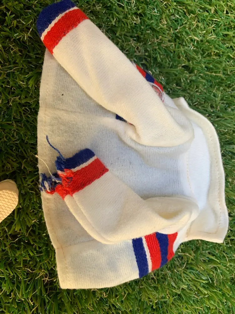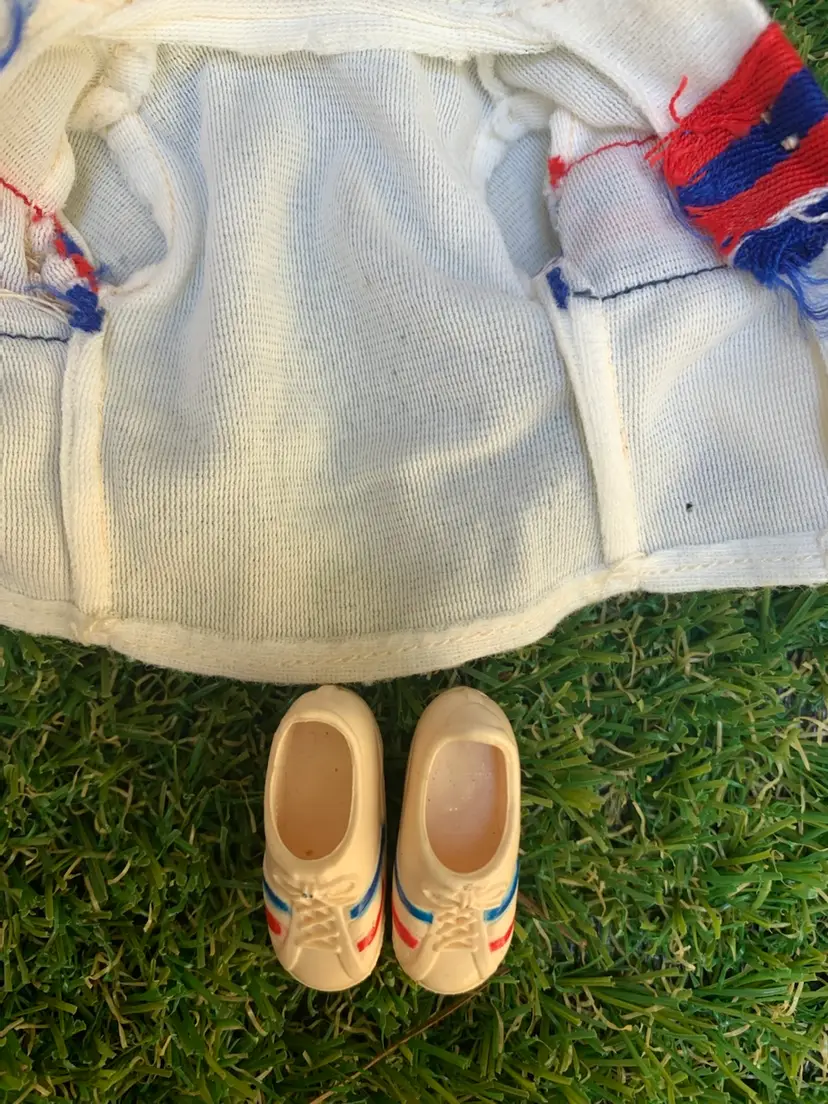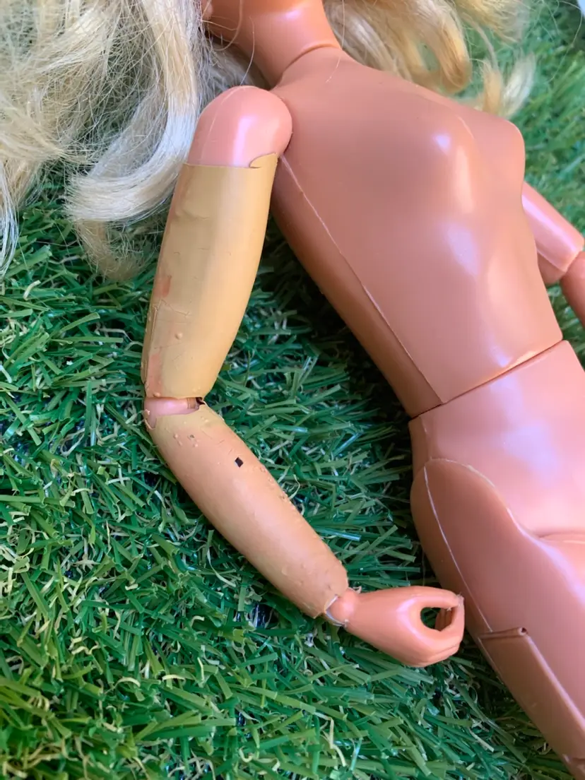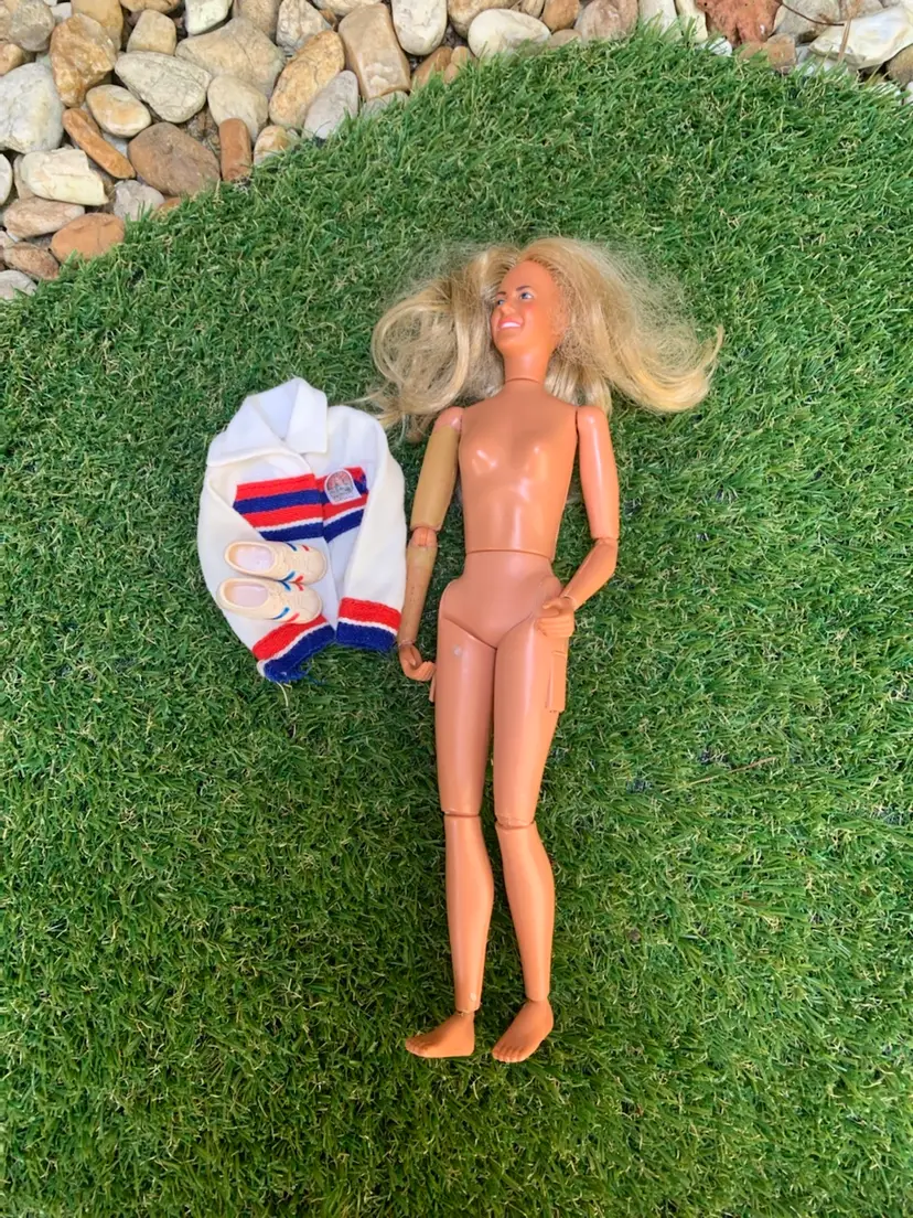 Jamie Sommers is looking pretty good for 50! This vintage doll includes the doll, shirt and shoes. Please see pictures for areas that show wear. Pants NOT included. One leg flap doesn’t close all the way and there is some chipping on arm. Slight discoloration but overall, she looks good. A great piece for any collection. Sold as is.