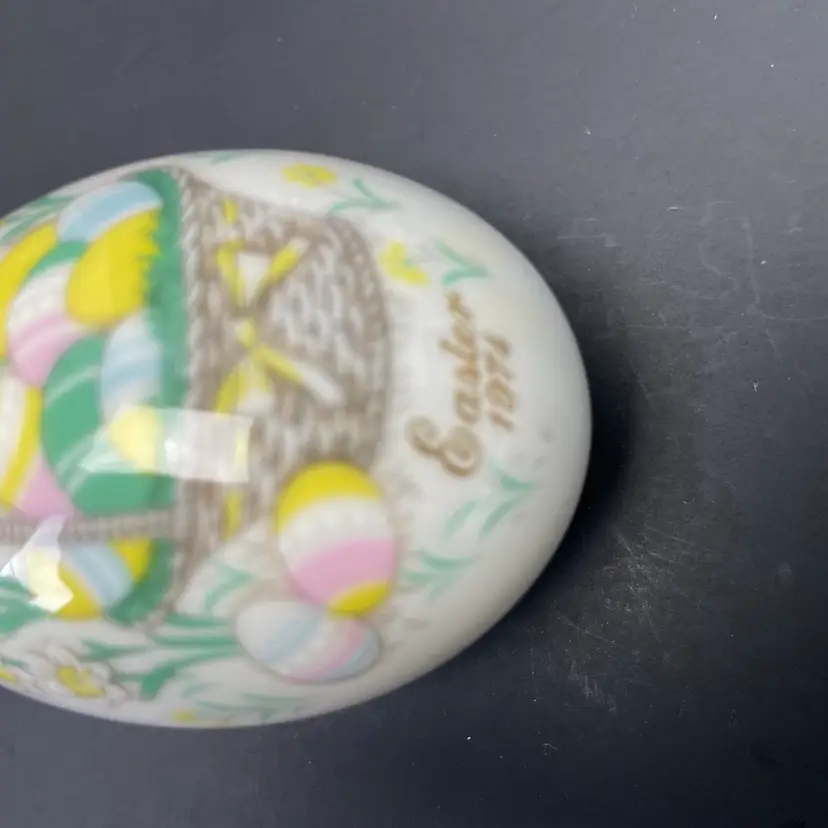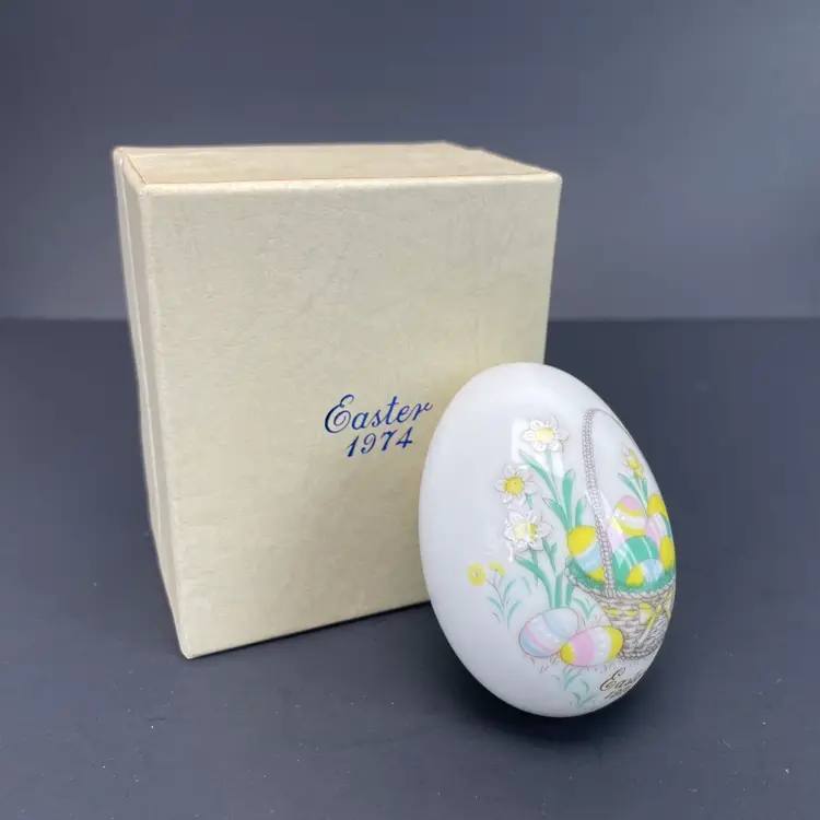 1974 Noritake Bone China Easter Egg Japan Original Box Basket Floral Limited vtg Approximate measurements: 3in x 2in x 2in Condition: pre owned. No chips, cracks, or breaks. See photos. EbEtPoMeNn