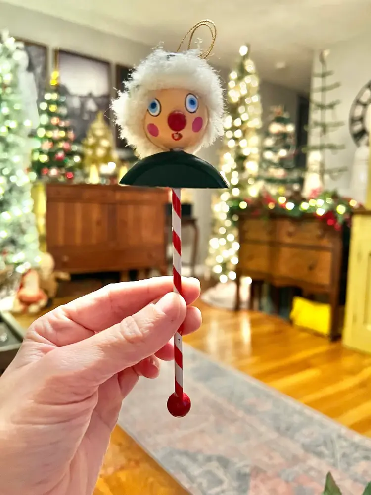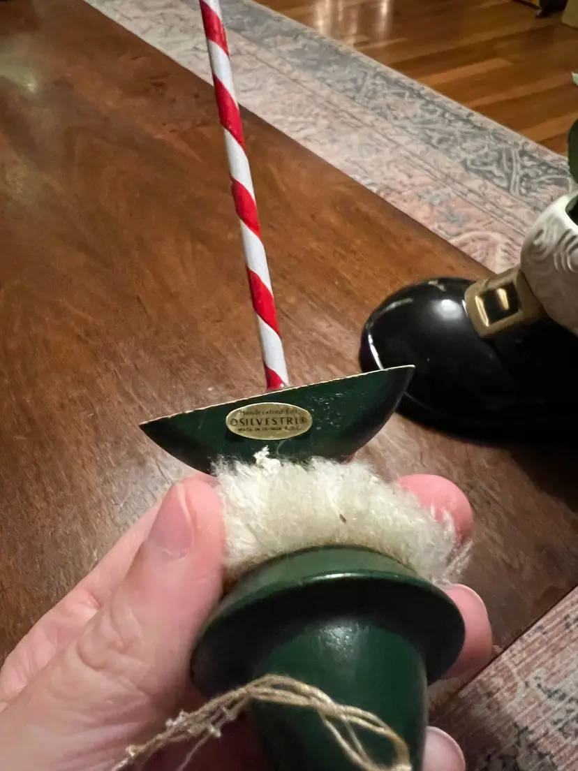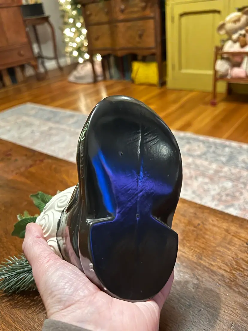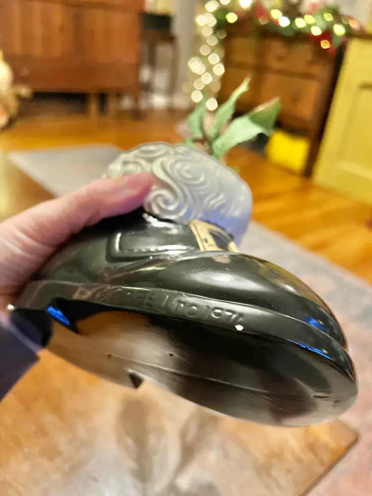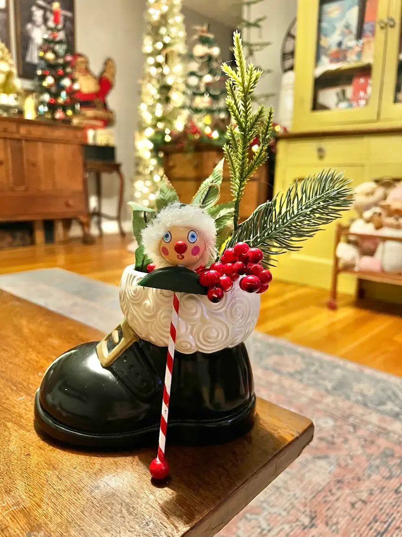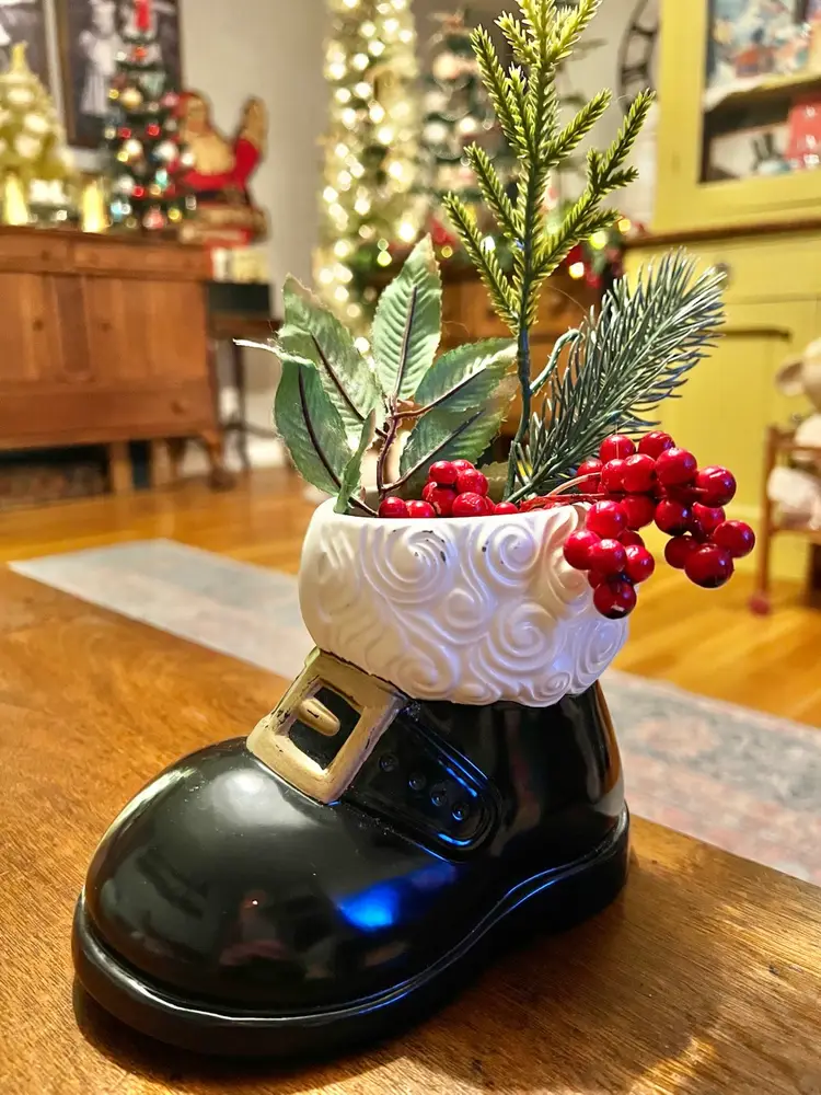 Boot measures 5x6.5” Ornament measures 6.75x1.5” Boot made by Gare INC 1974 One small area on boot where paint has chipped off- as photographed.