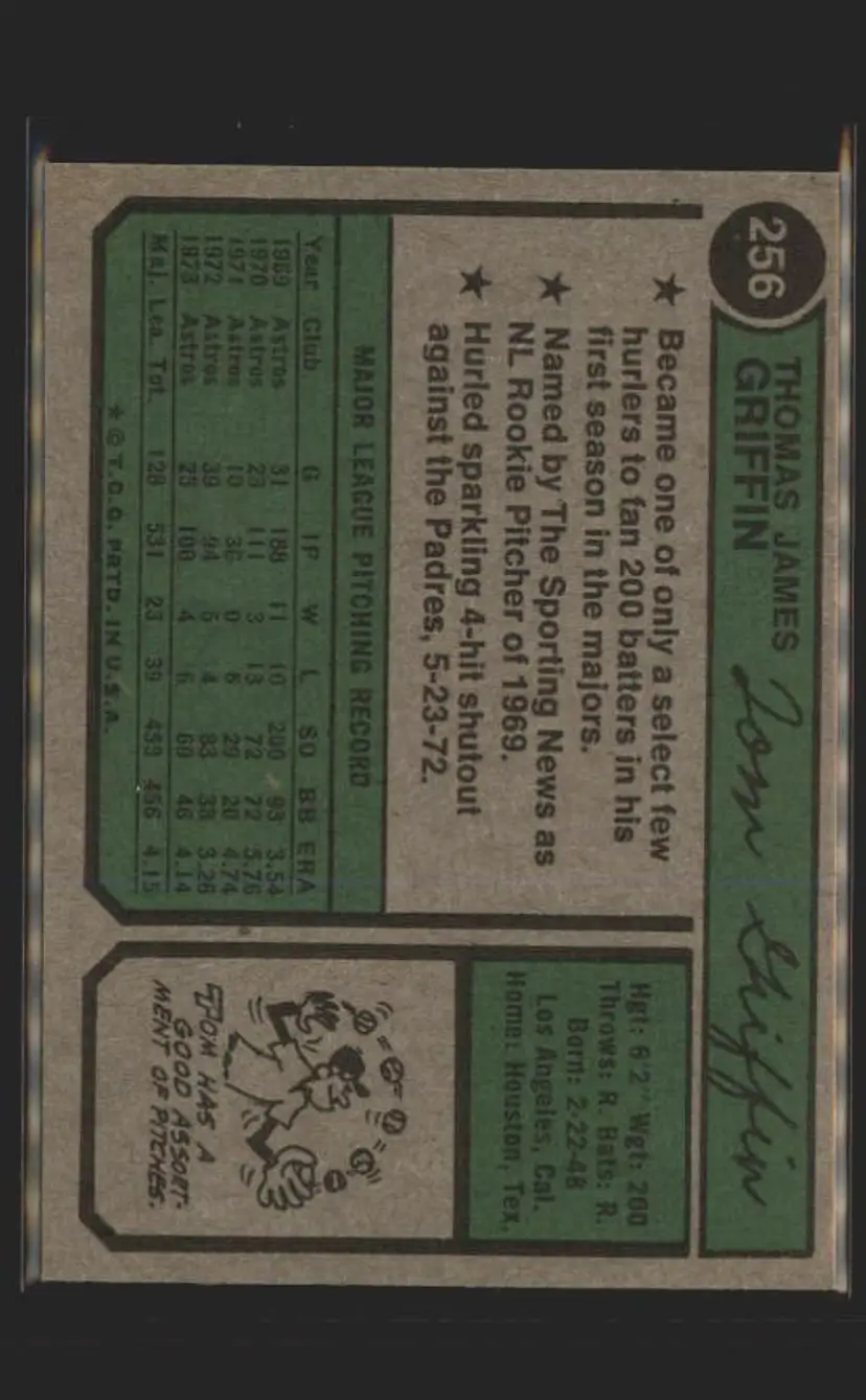 1974 Topps #256 Tom Griffin - (pk5) - Houston Astros