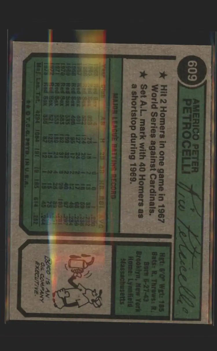1974 Topps #609 Rico Petrocelli - (pk5) - Boston Red Sox
