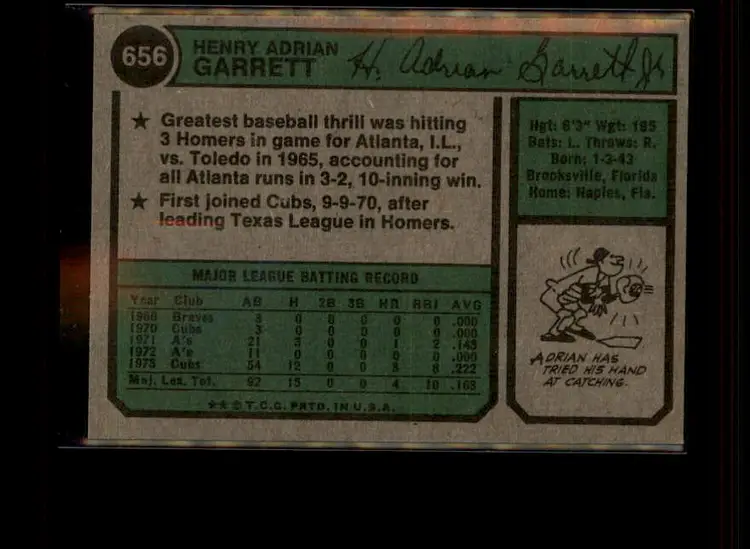 1974 Topps #656 Adrian Garrett - (pk1) - Chicago Cubs