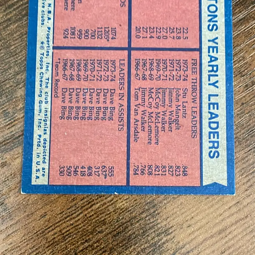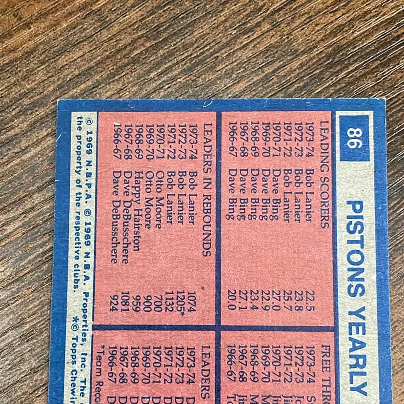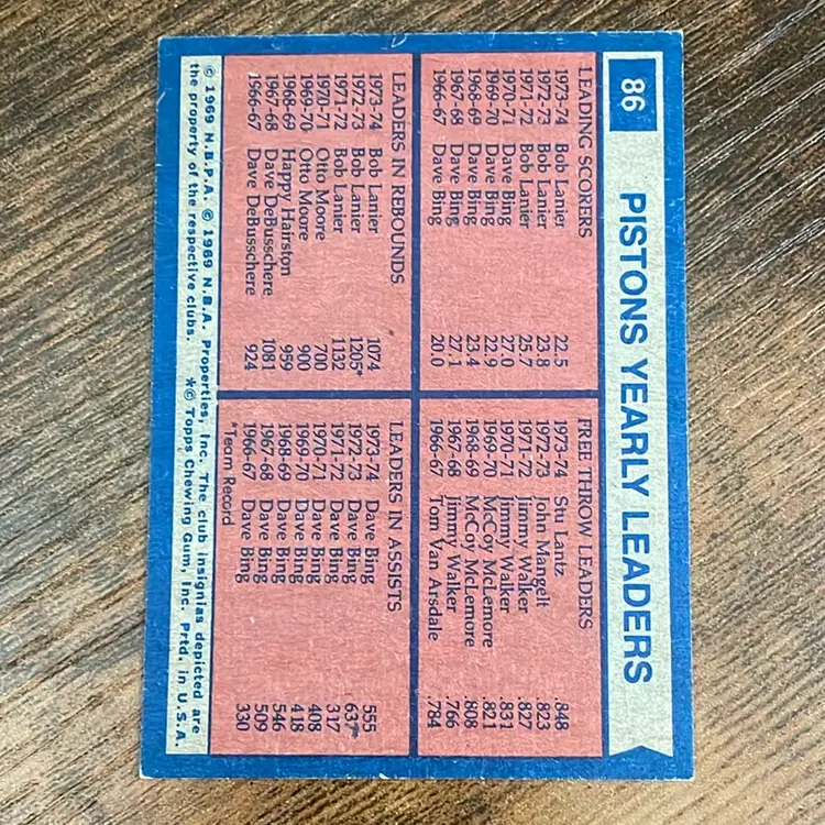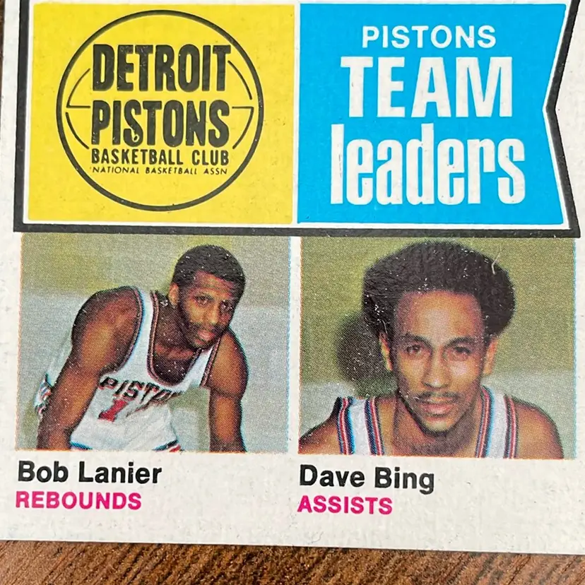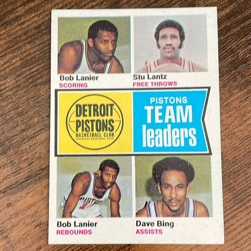 1974 Topps Detroit Pistons team leaders card. Has some surface issues. Take a look at the pictures for more details.