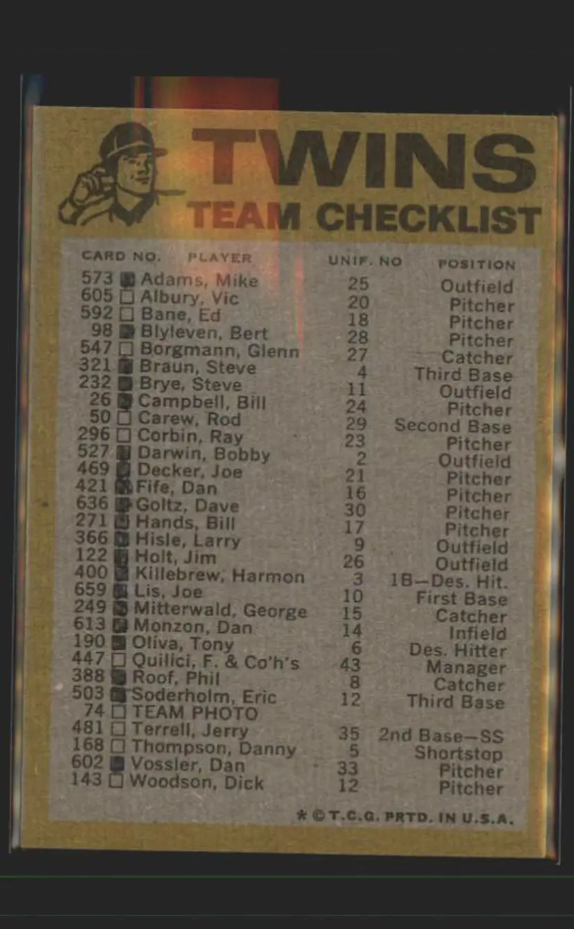 1974 Topps #NNO Minnesota Twins Team Checklists - (pk2) - Minnesota Twins