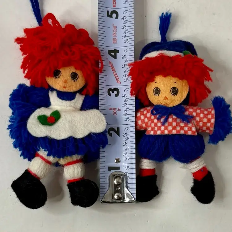Condition: Overall in good vintage condition, light discoloration on Raggedy Ann’s legs. Measurement: Approximately 4” T. The stand is not included. Please see pictures for condition and measurements as they are part of the description. NS9-2 Thank you for looking!