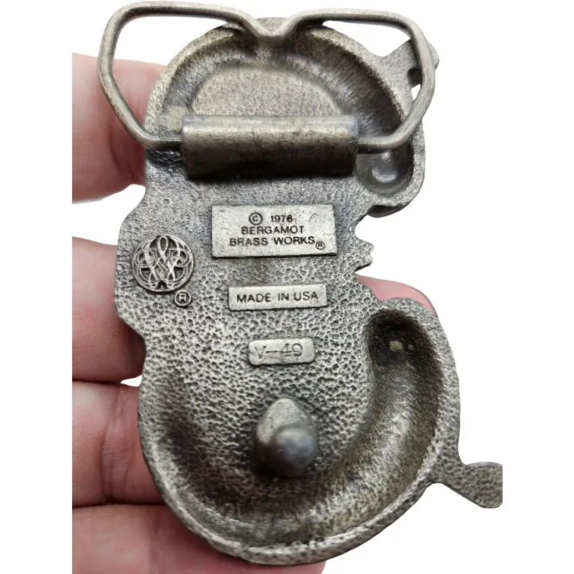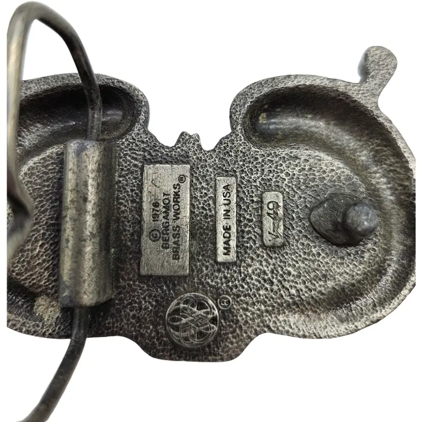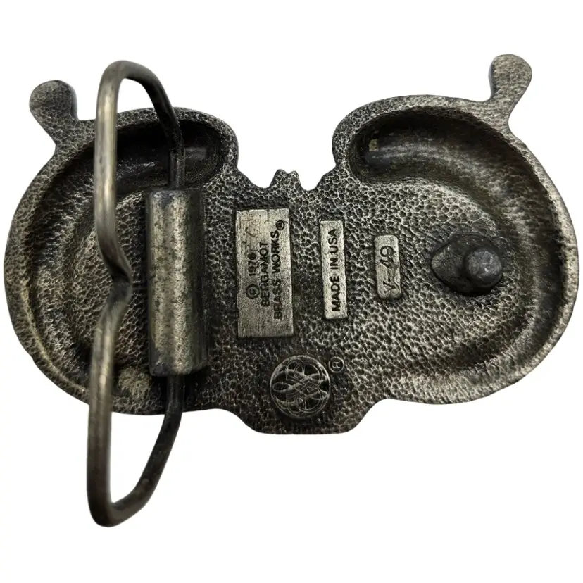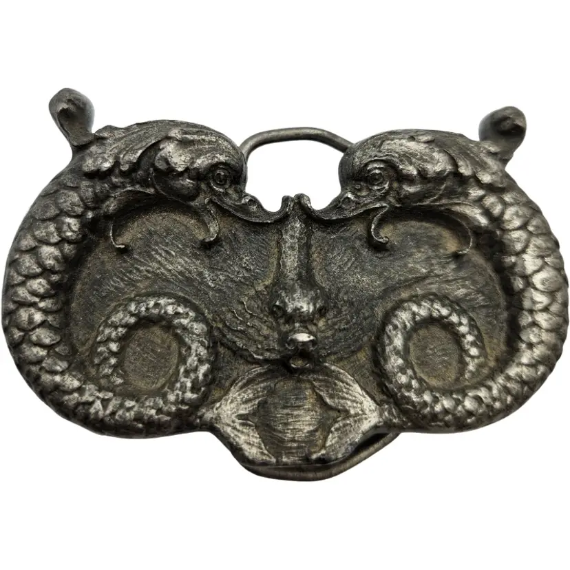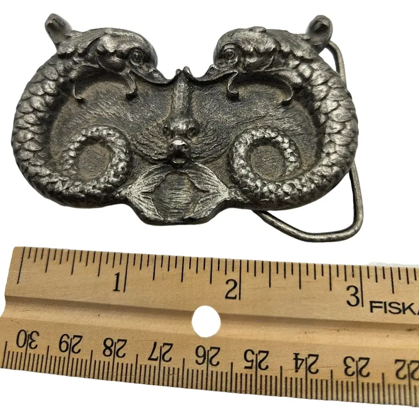 U.S. Navy Submarine Service insignia belt buckle featuring mirrored dolphins flanking a submarine.