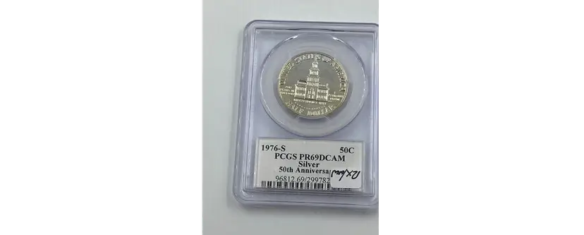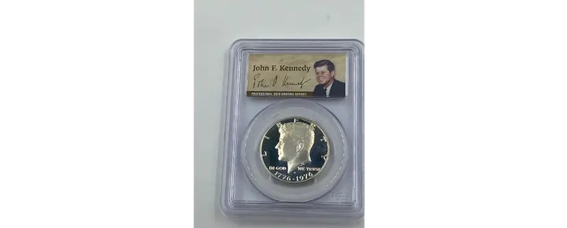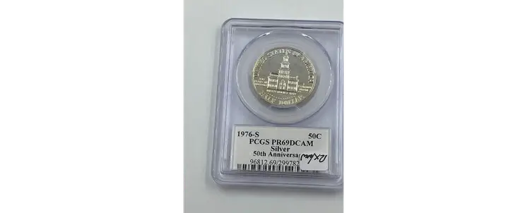 Celebrate the spirit of America’s Bicentennial with this stunning 1976-S Silver Kennedy Half Dollar, graded PR69 Deep Cameo (DCAM) by PCGS. Struck in 40% silver at the San Francisco Mint, this coin is a remarkable tribute to both the nation’s 200th anniversary and the enduring legacy of President John F. Kennedy. The obverse features Gilroy Roberts’ iconic portrait of Kennedy, while the reverse, designed by Frank Gasparro, showcases the special Bicentennial design with the Independence Hall motif and dual dates “1776-1976.” The Deep Cameo designation highlights the frosted design elements against a flawless, mirror-like background, creating a striking visual contrast. With its high grade and historical significance, this coin is a must-have for collectors and investors alike. Whether you’re commemorating the Bicentennial or expanding your numismatic portfolio, this 1976-S Silver Kennedy Half Dollar offers both beauty and enduring value.