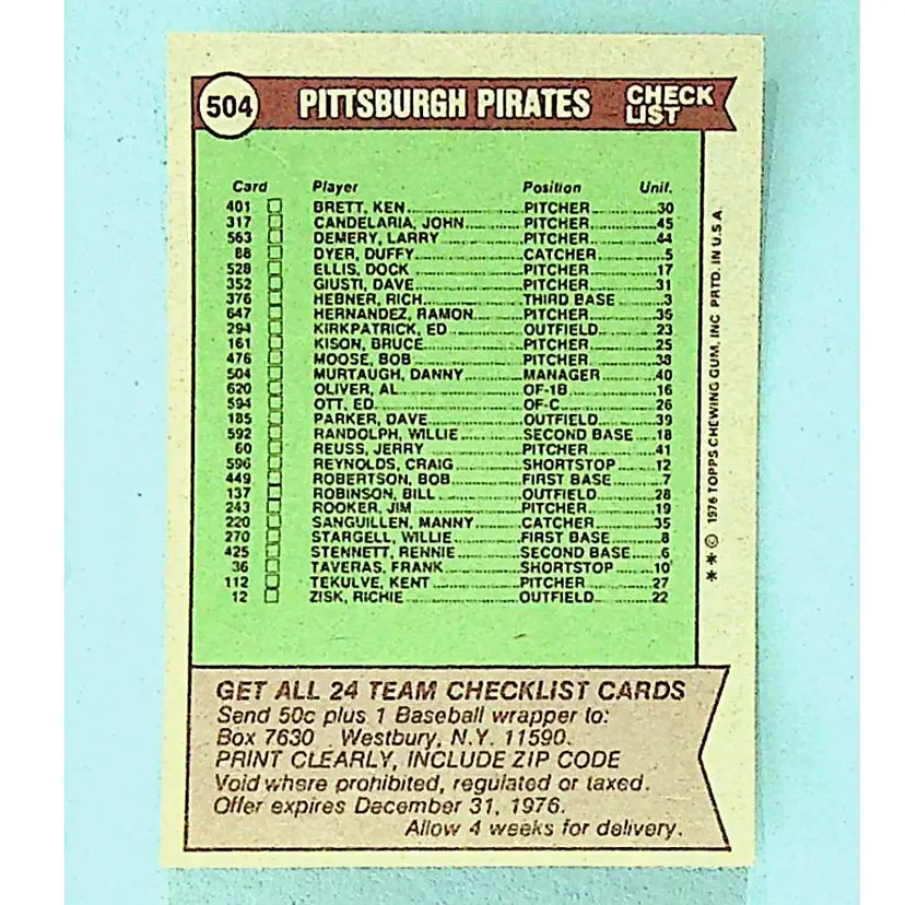 1976 Topps Pittsburgh Pirates Team #504 Baseball Card