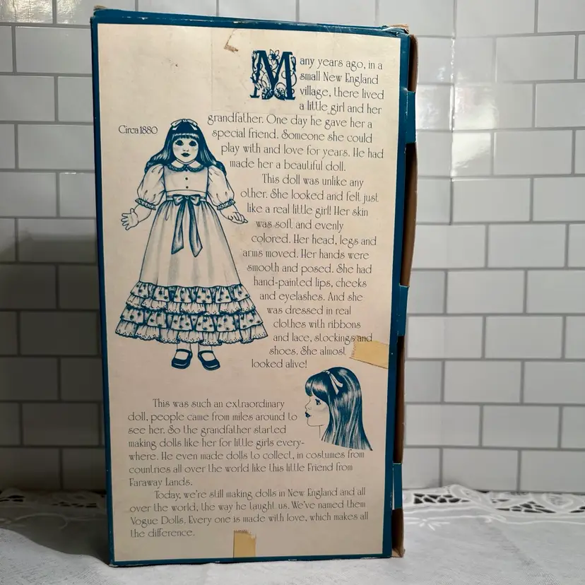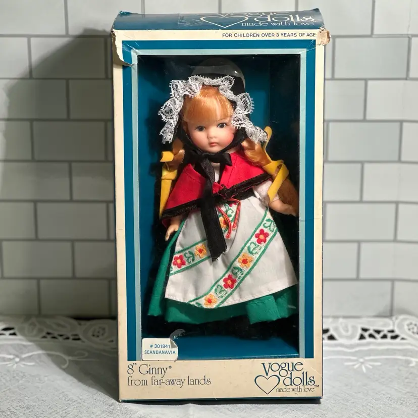This 1977 Ginny from far-away lands doll comes in the original box, attached to the card. The box itself has condition issues. Please refer to pictures for condition issues.