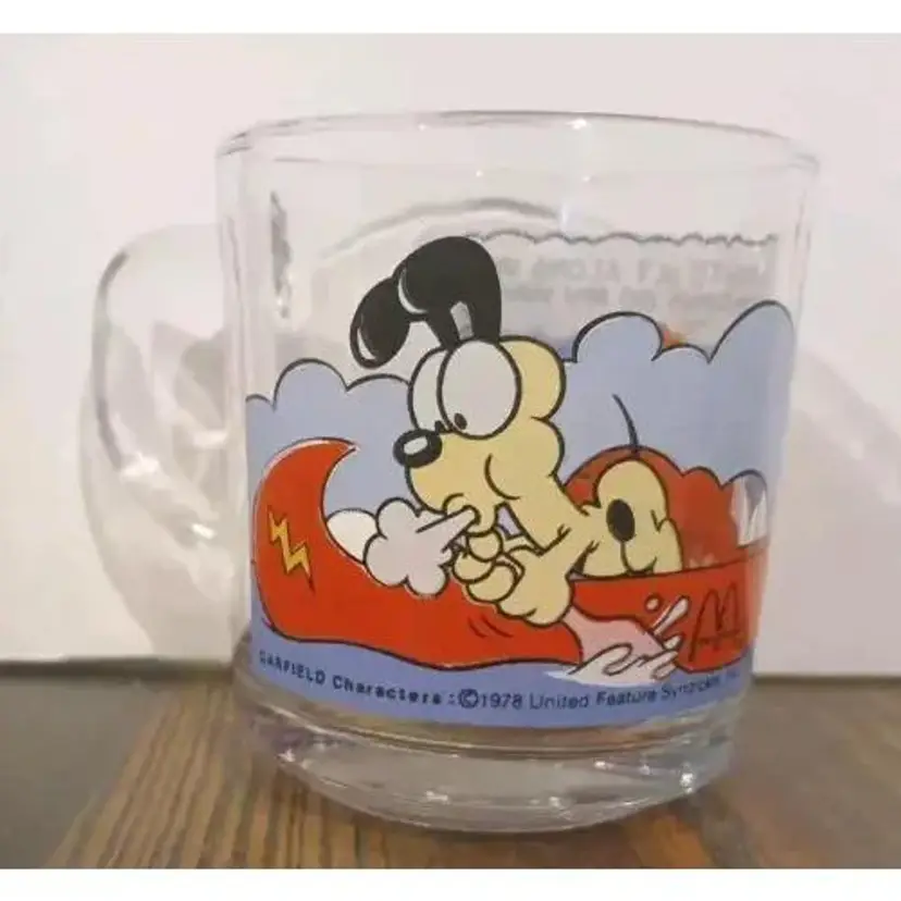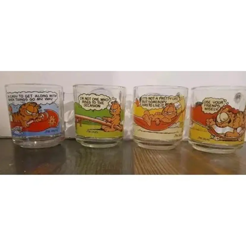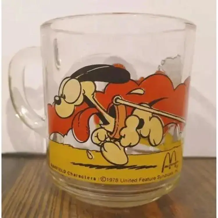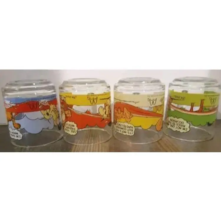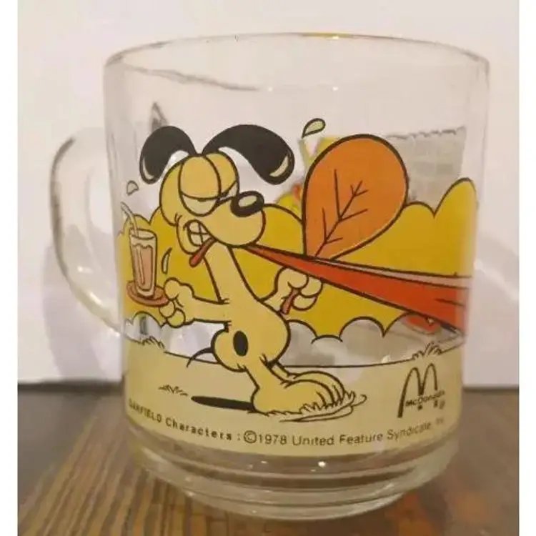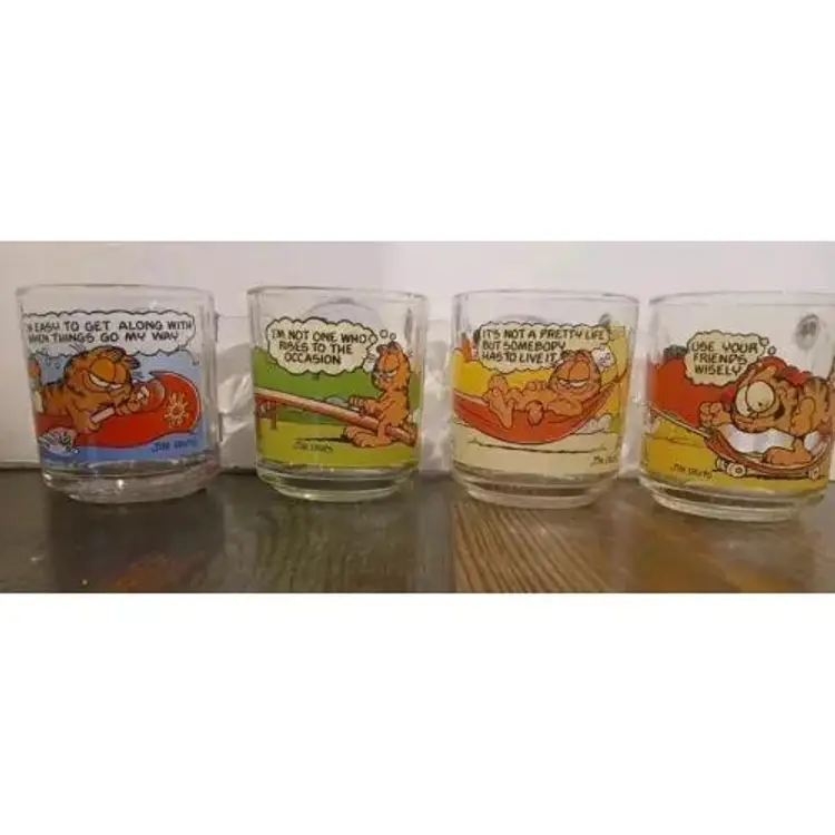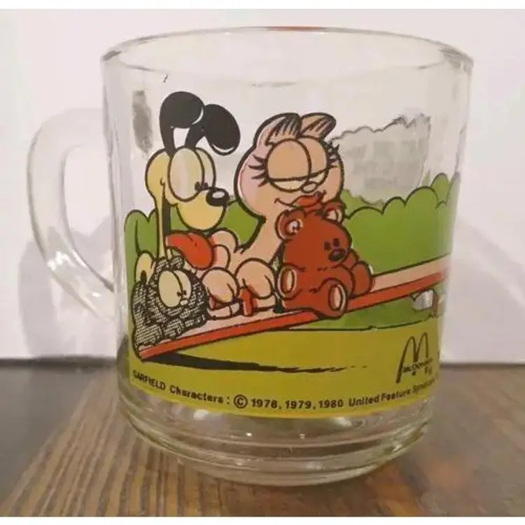 These are used but in excellent condition. There are no chips or cracks. There is very minimal scratches. These are great for Garfield collectors. There is minimal hard water filming. It does not state if it is dishwasher or microwave safe. I personally would not put it in the dishwasher or microwave.