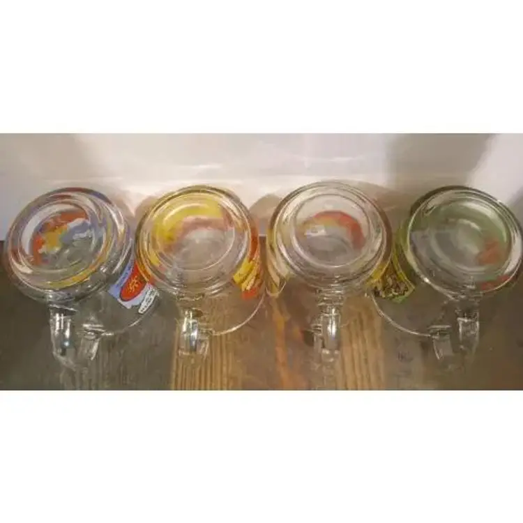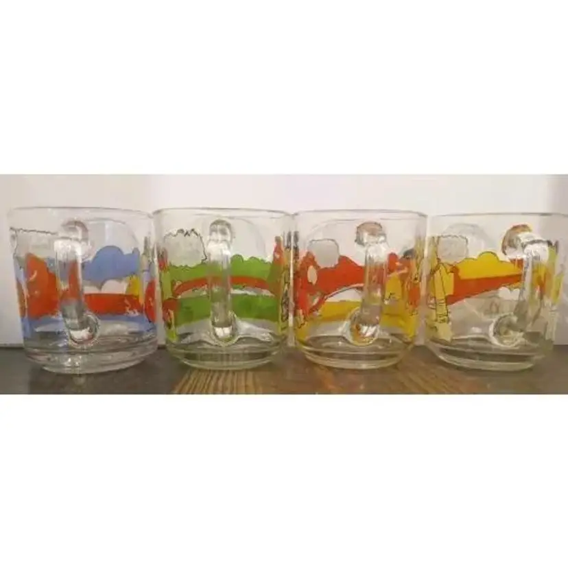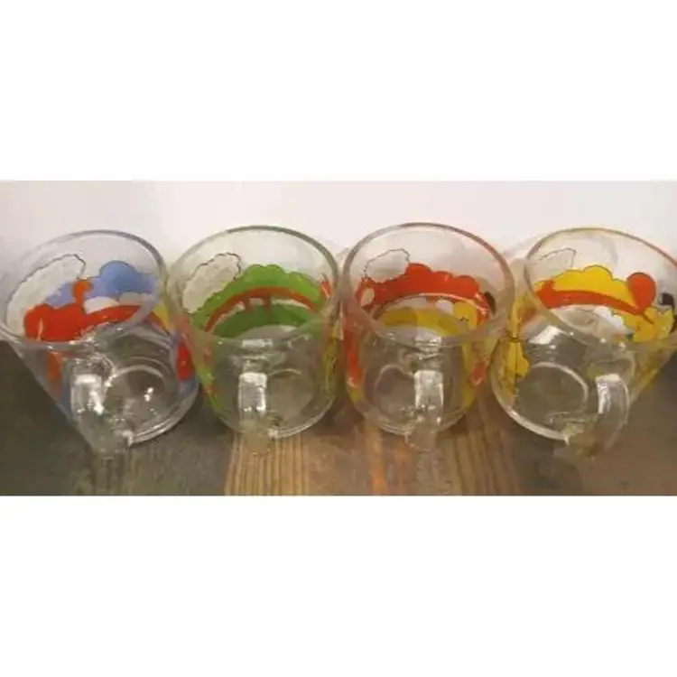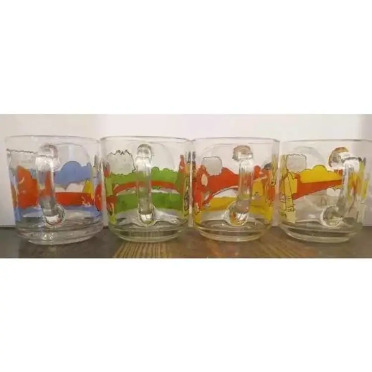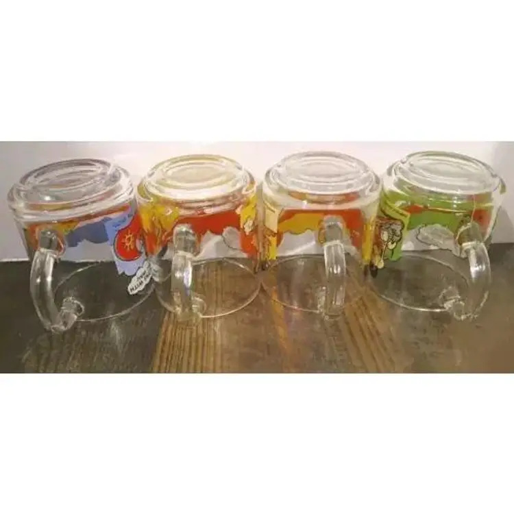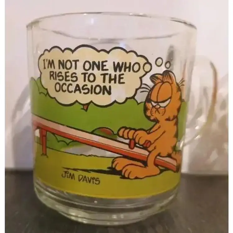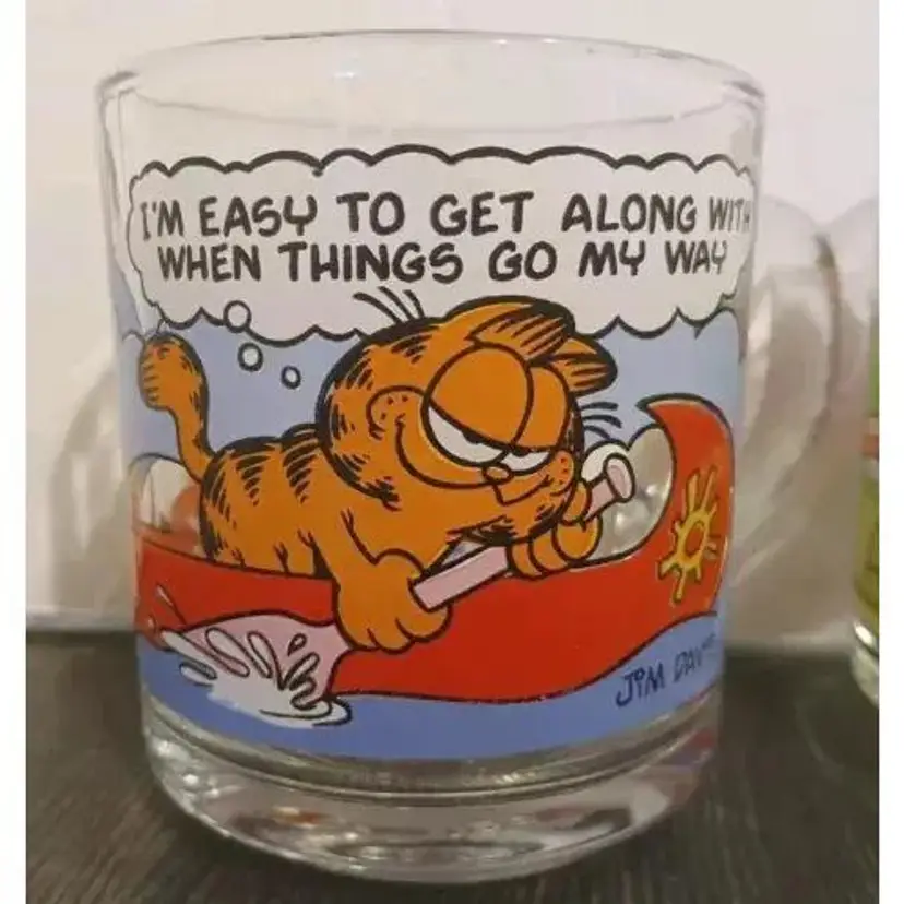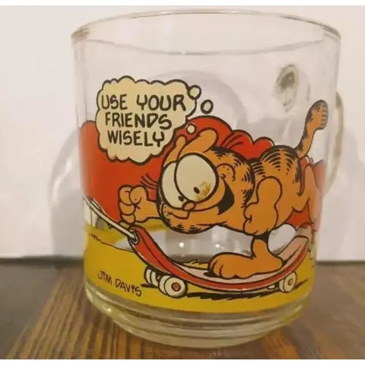 These are used but in excellent condition. There are no chips or cracks. There is very minimal scratches. These are great for Garfield collectors. There is minimal hard water filming. It does not state if it is dishwasher or microwave safe. I personally would not put it in the dishwasher or microwave.
