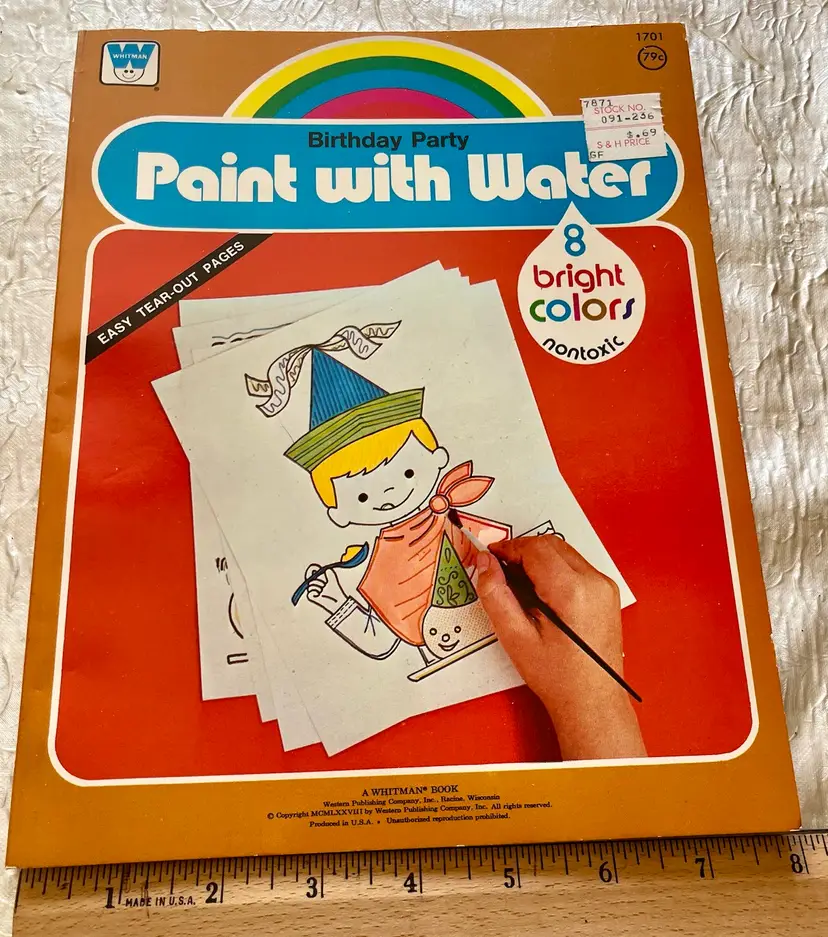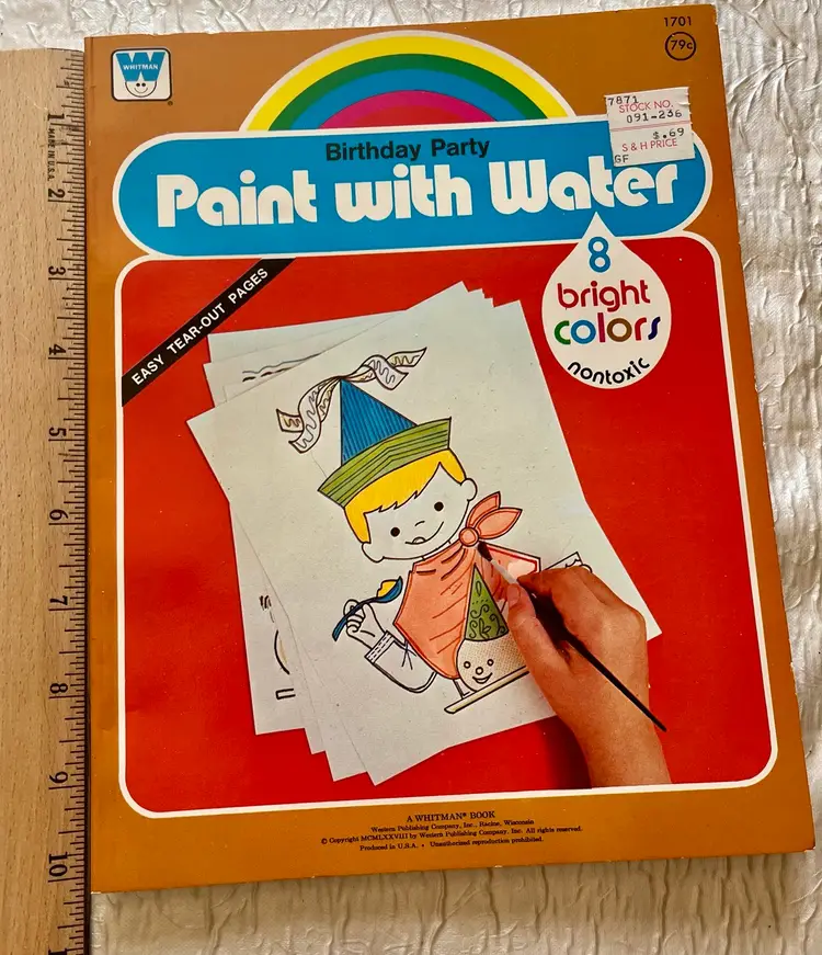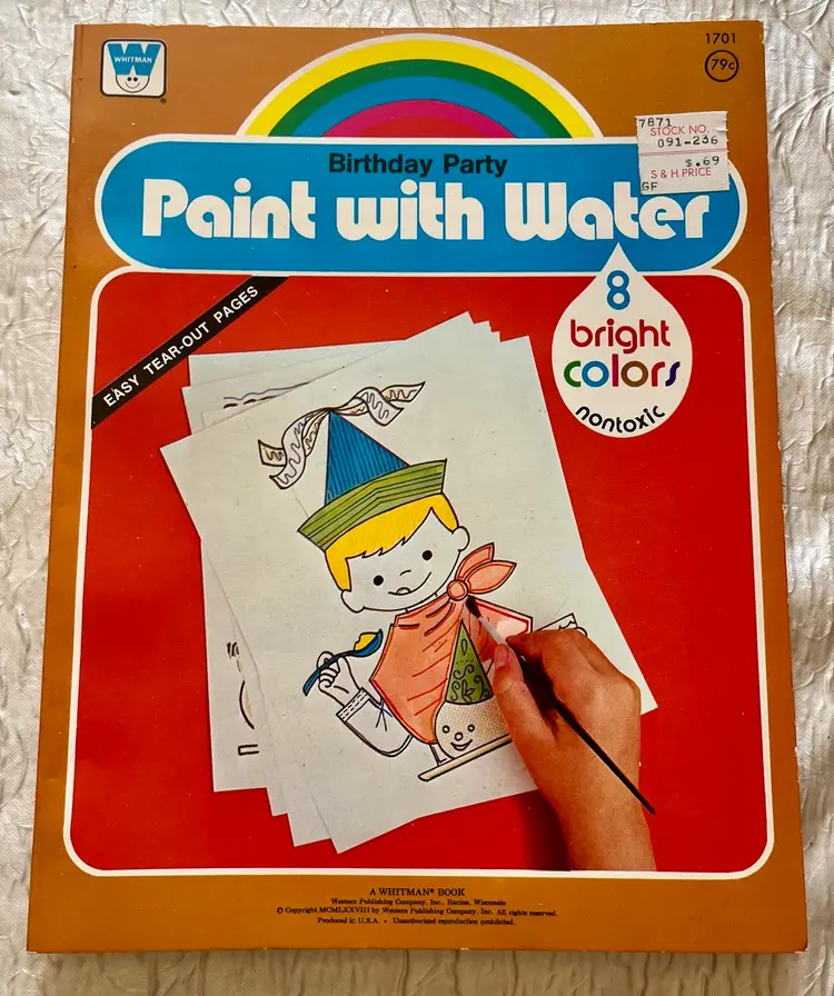 1978 Paint With Water Birthday Party Coloring Book by Whitman 8 Bright Colors