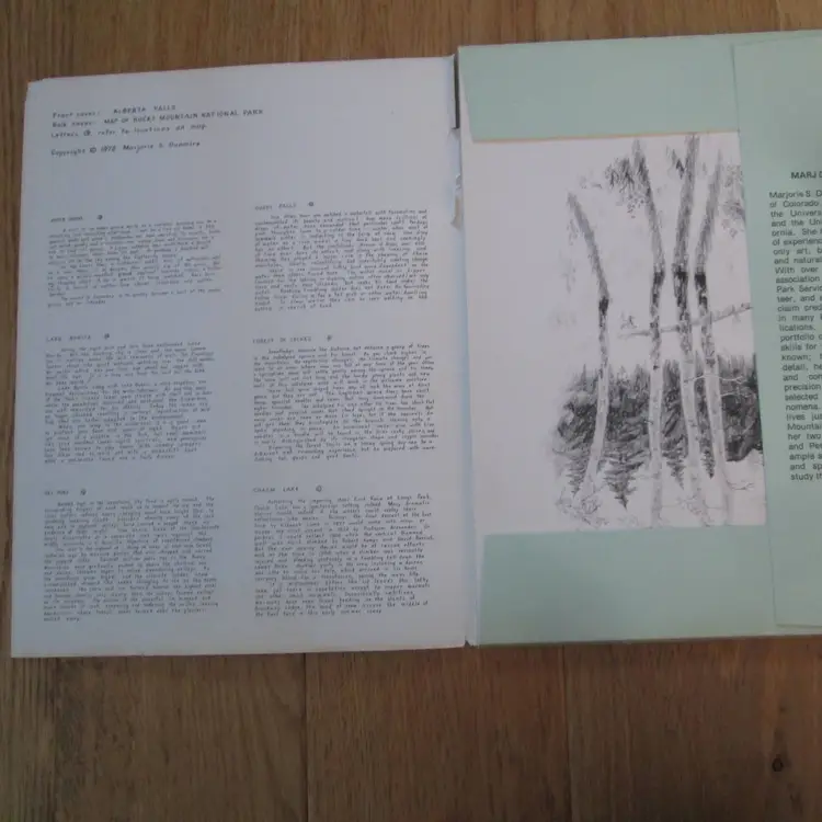 1978 Rocky Mountain Sketches portfolio by Marj Dunmire. The portfolio is a set of 12. Note the folder they come in has some wear as shown in the photo. The actual prints all seem to be in good condition and measure 9" x 12". From a smoke and pet free home.