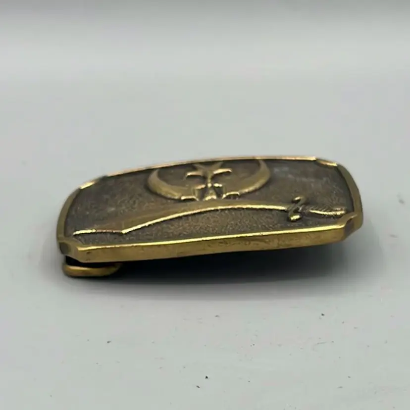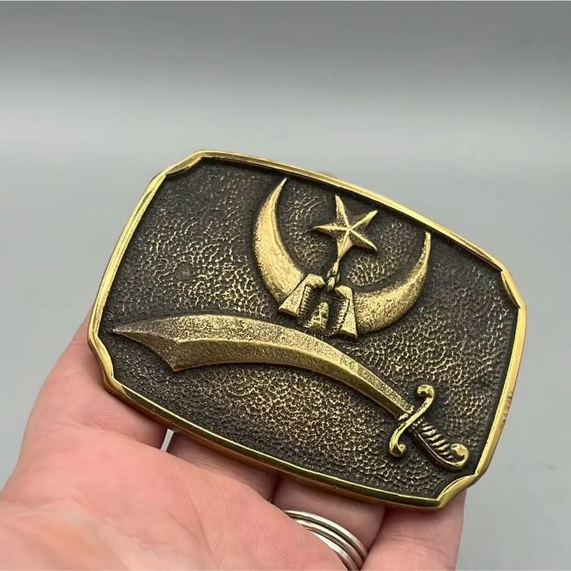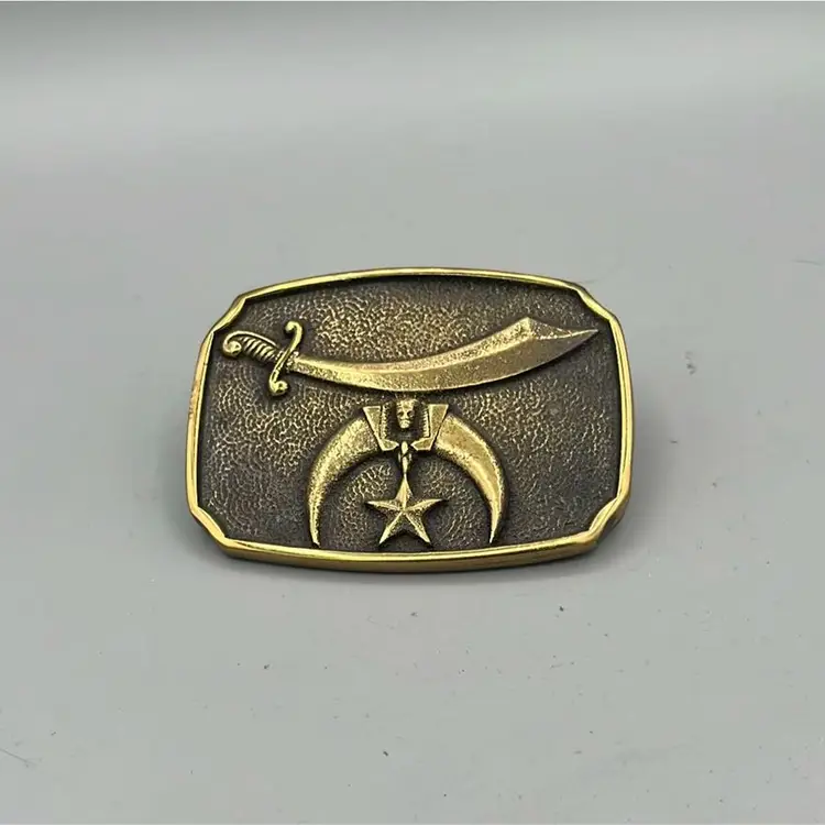 All brass fraternal society belt buckle. Shriner’s are the step after the highest level of Freemasonry is achieved