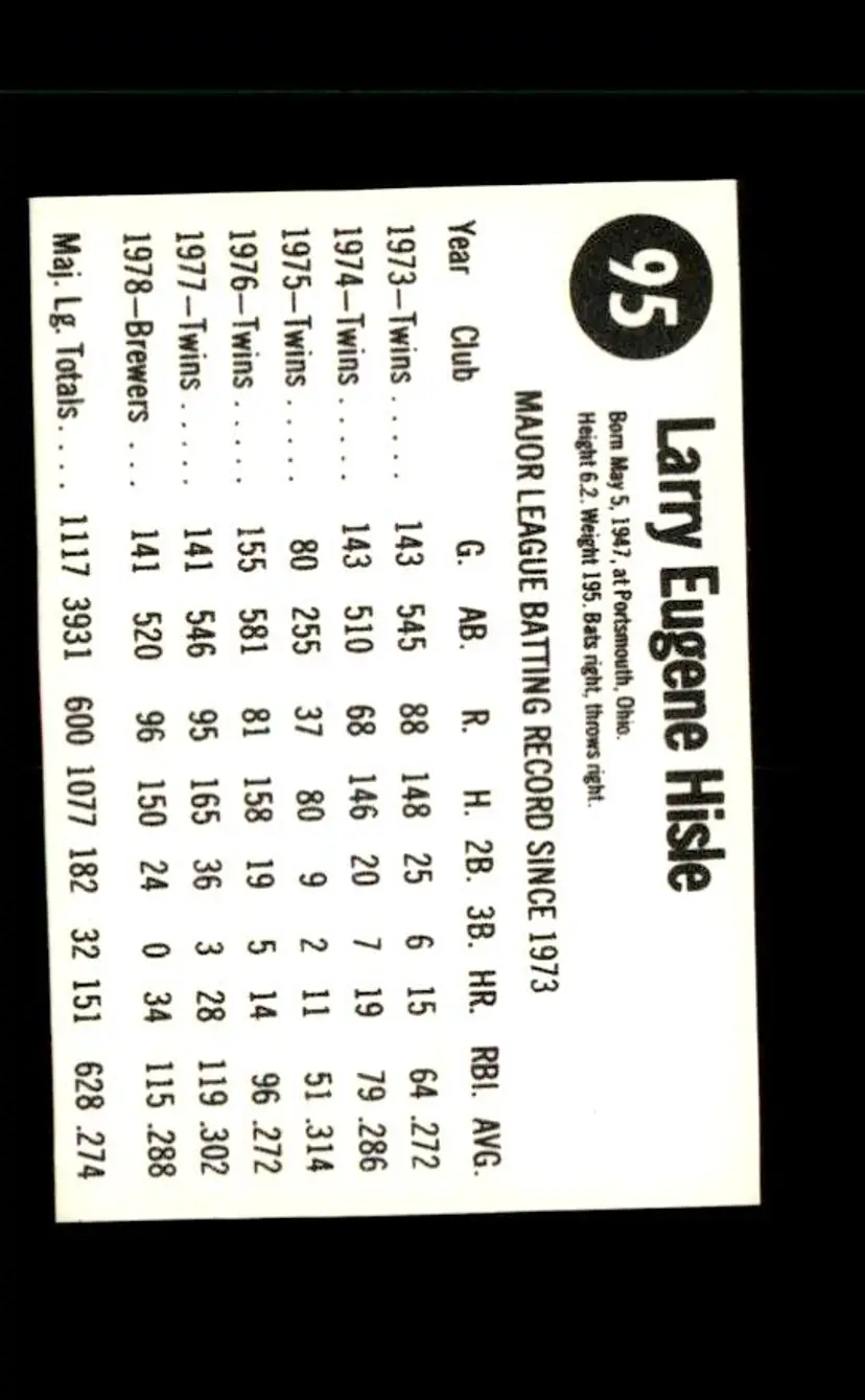 1979 Hostess #95 Larry Hisle - (pk4) - Milwaukee Brewers