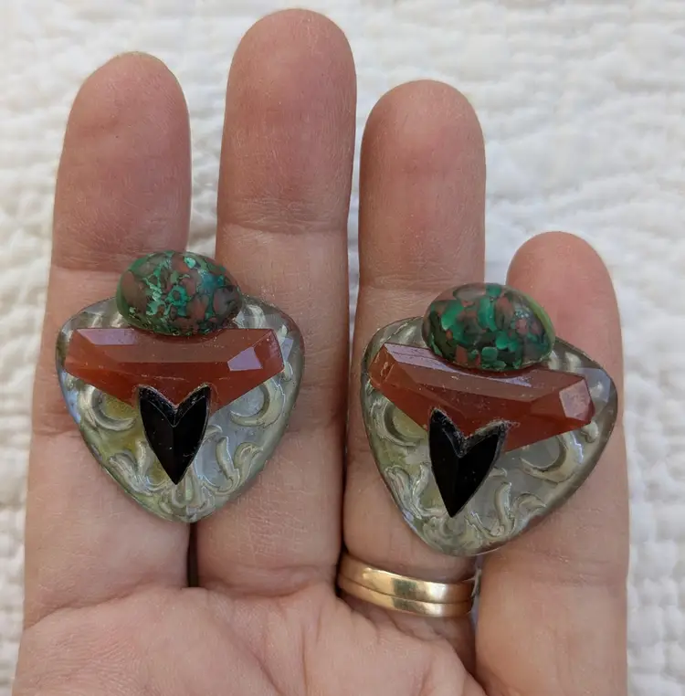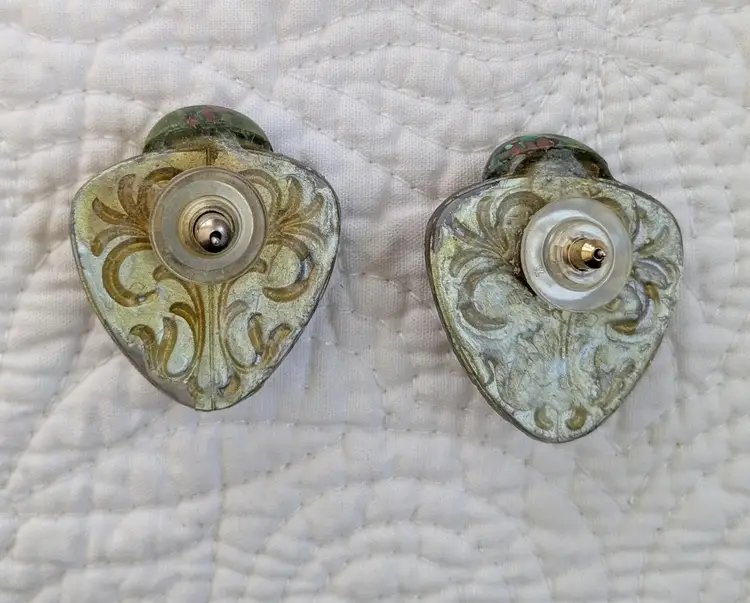 1-1/8" across. Made of glass, paper and stone, pierced posts, unmarked