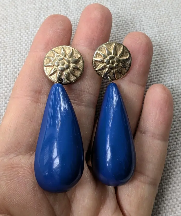 2-1/2" long with a gold tone floral top, pierced, unmarked