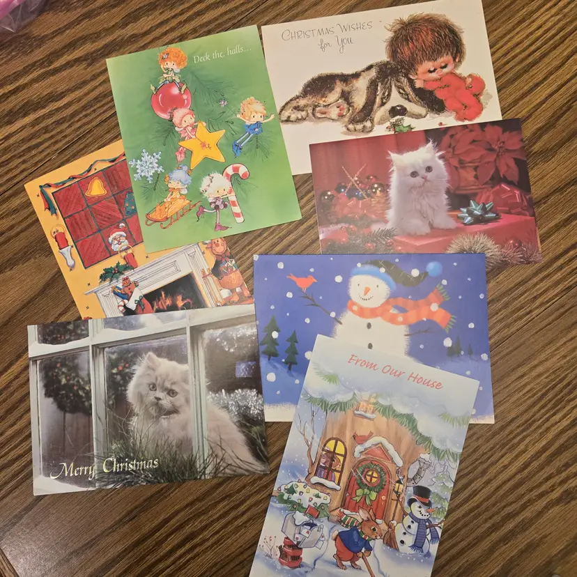 This is a set of 17 (18) USED Christmas cards, all single fold, so I've dated them from the 1980s or 1990s. They could be a bit newer but I doubt they are older since older cards seem to be four fold. I chose the ones that have cute pictures/theme to list as a lot. I hope someone can use them!