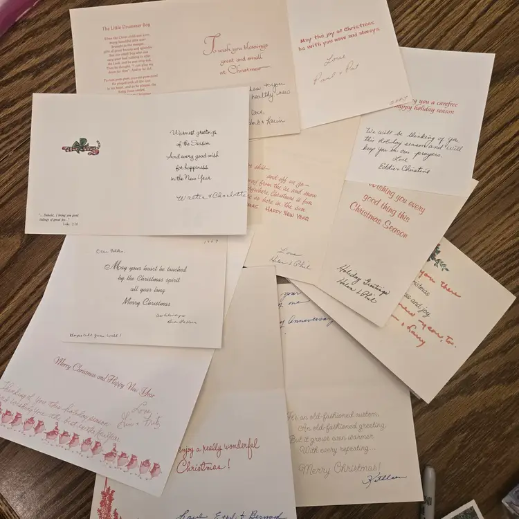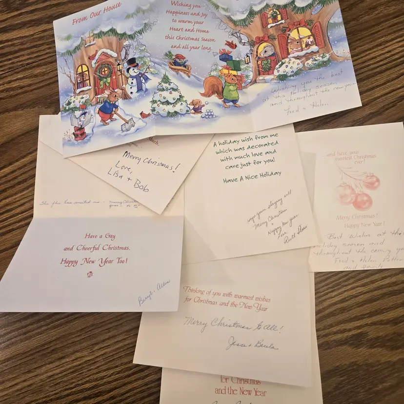 My niece gave me these cards that were from her other grandparents' home (non smoking, no pets). She and I spent hours going through years of cards, tossing some, saving those that family might be interested in and saving a few that others could use for crafting.