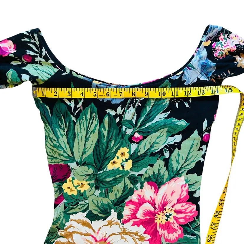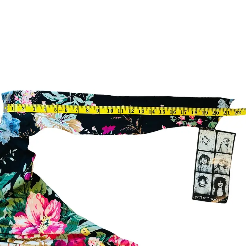 Amazing piece with the original tags. The dress is made of jersey cotton material and has stretch. The sleeves can be either on the shoulder or off (on me they tend to fit off the shoulder better) It is sized a vintage small. Please see measurements as it appears to be running on the smaller side and might be more like an XS. AI model picture included to better show the look/style of the dress. All other pictures represent the actual garment.