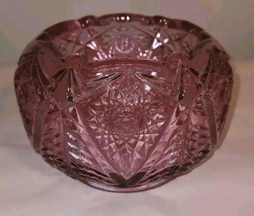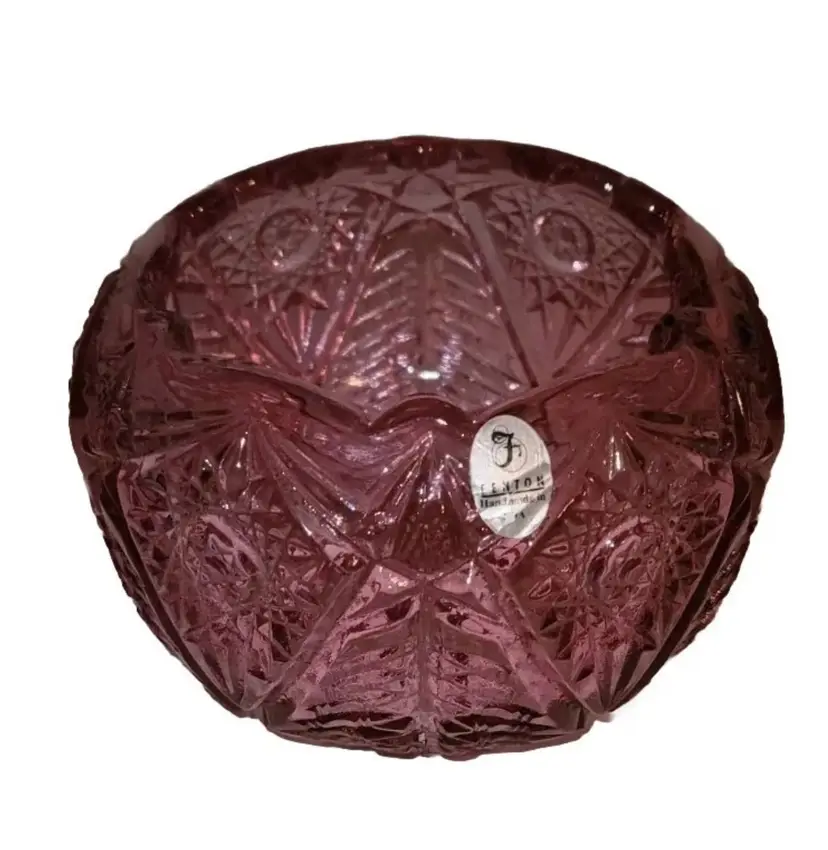 Fenton Glass Cranberry Pink Rose Bowl • Candle/Vase • Original Sticker 4"H Color subject to change in certain lighting. Nuances of many shades. With all the cuts in the pattern, absolutely stunning light refraction. Approx 4" H X 3.75" W Very good condition. No chips, cracks, or breaks. Areas of minimal wear are possible due to age, handling, and storage. See pictures.