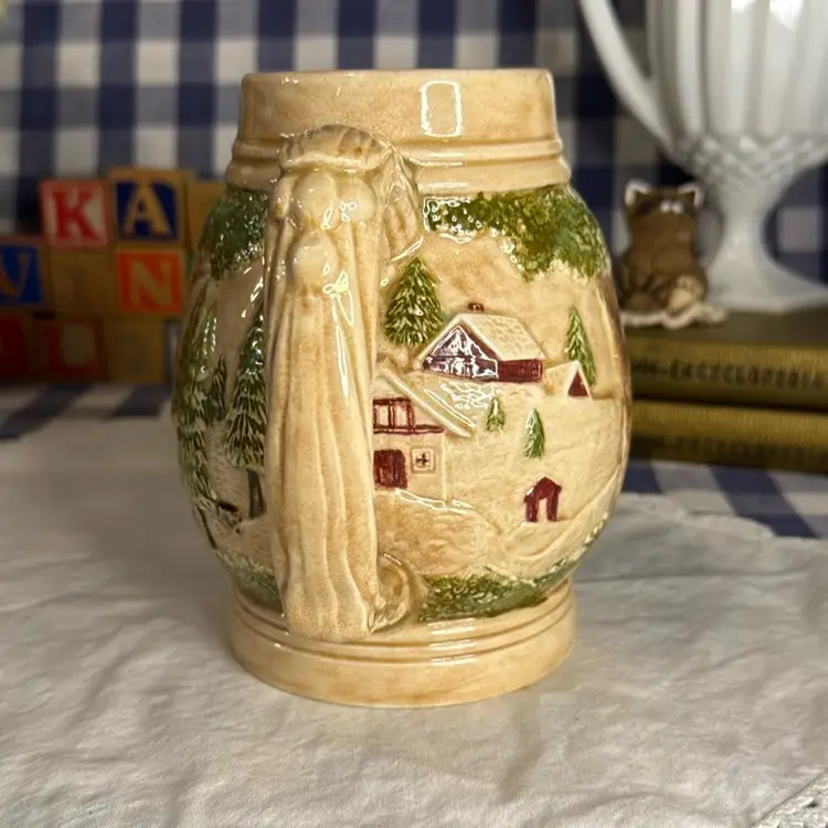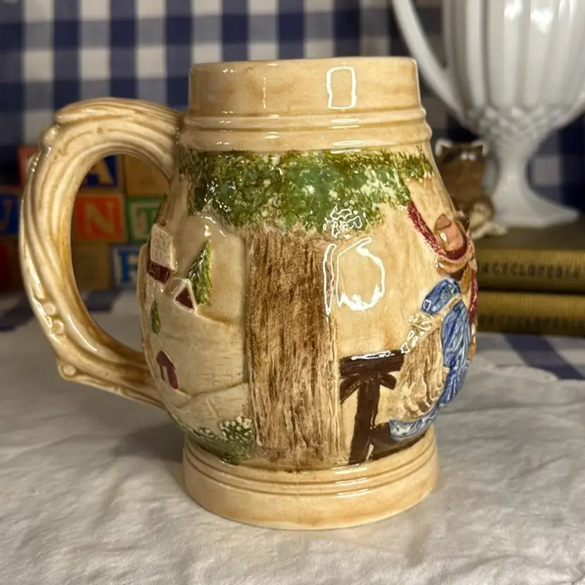 1980s Hobbyist Signed Beer Mug / Stein - Three Men At Table Drinking with Hats - 6”.