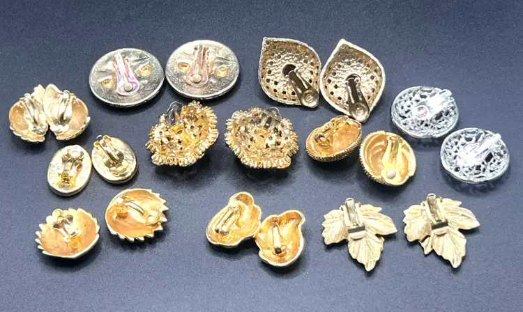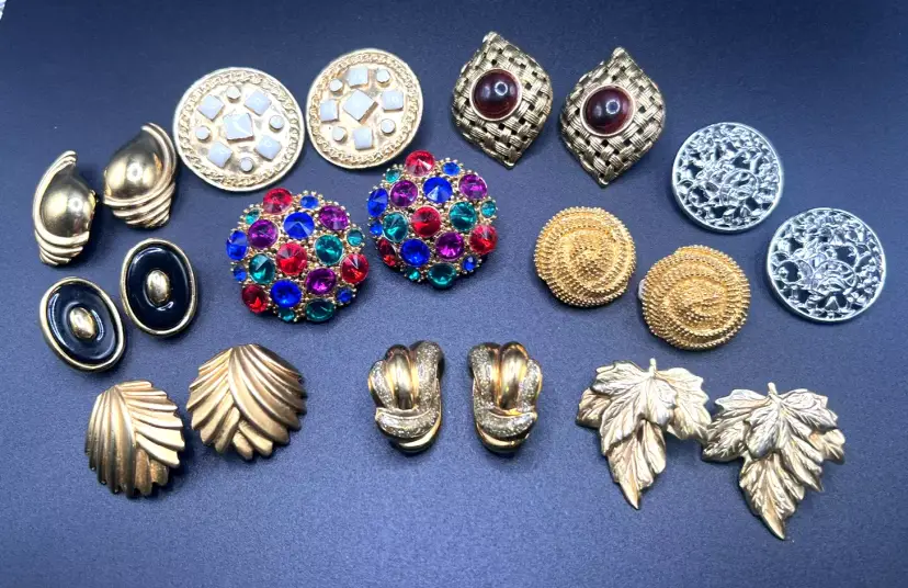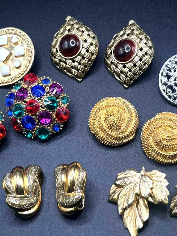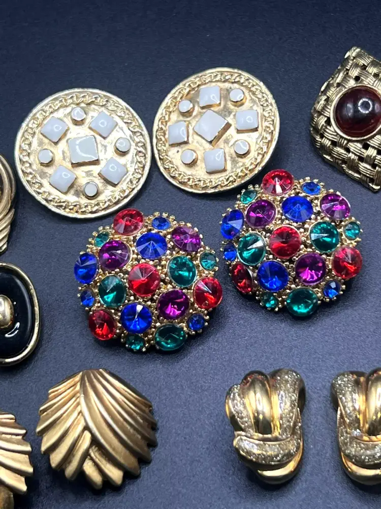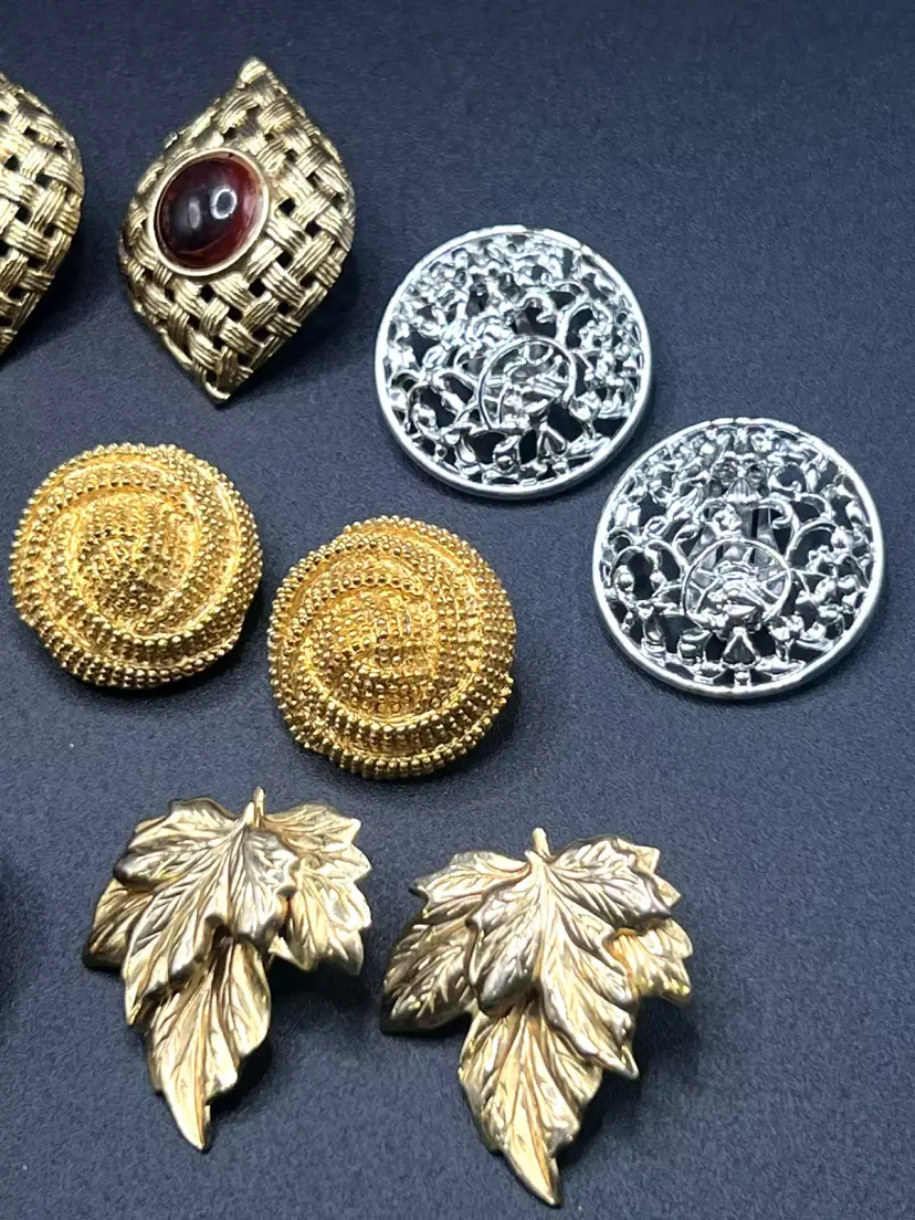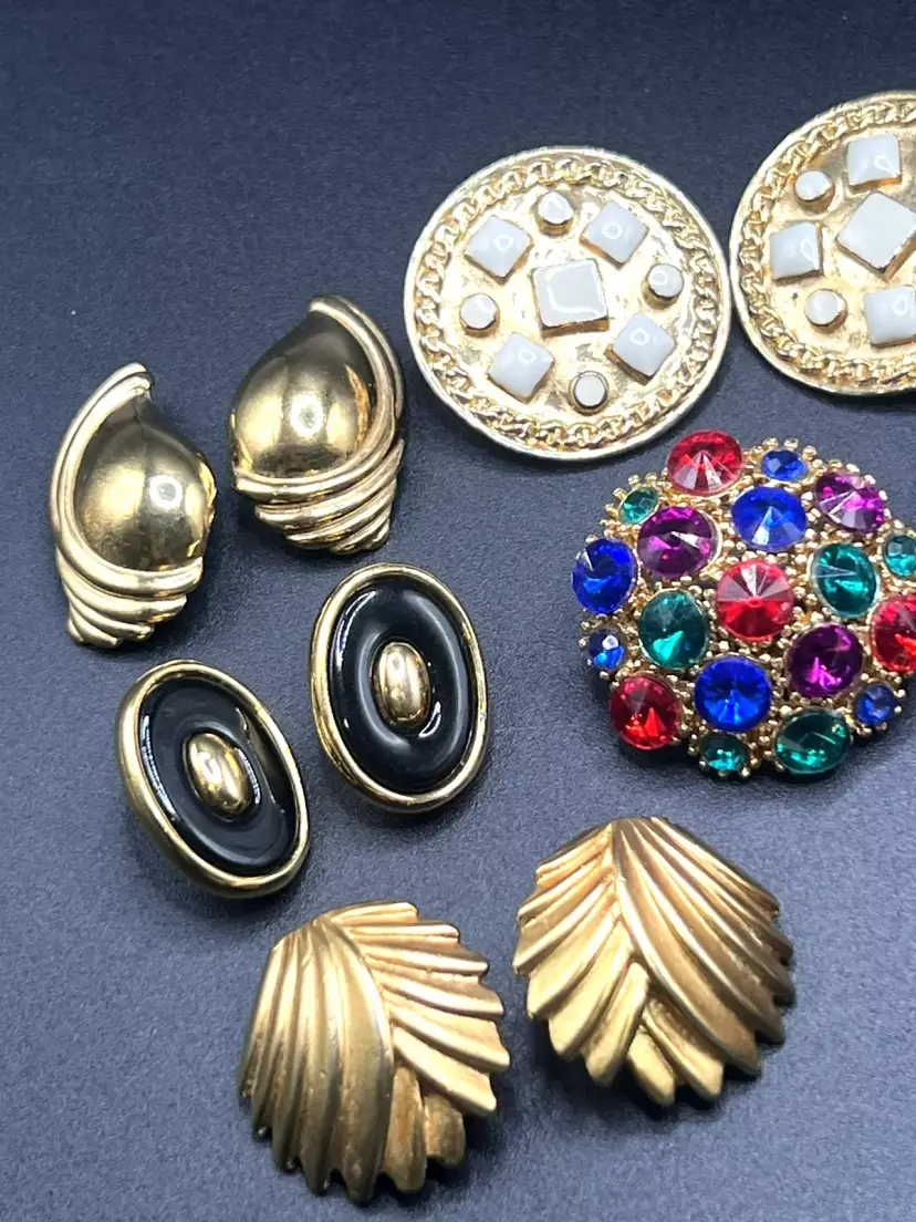 Description: 1980s NICE Lot of 10 Vintage Earrings All are Clip-ons One pair is marked Sarah Coventry SUPER QUALITY Great Estate Find!