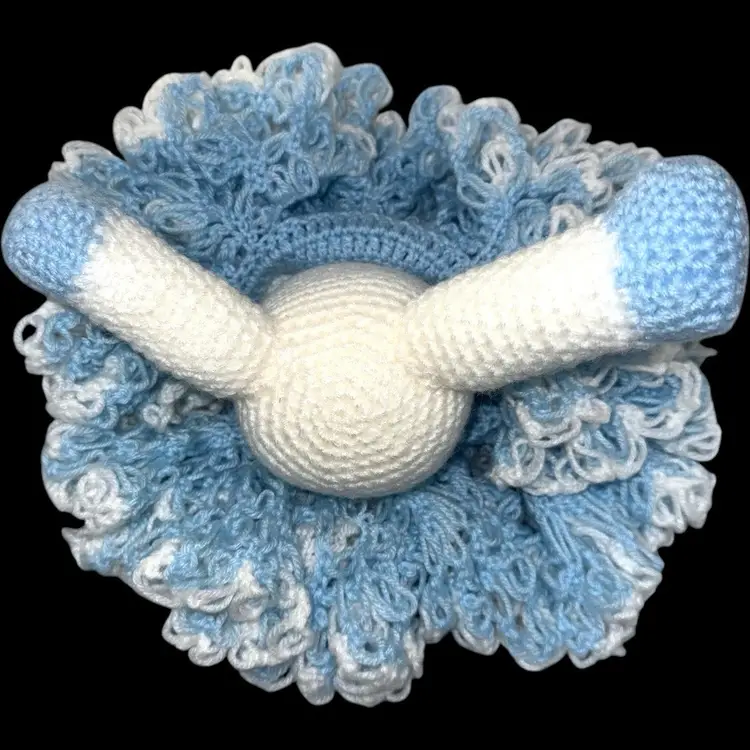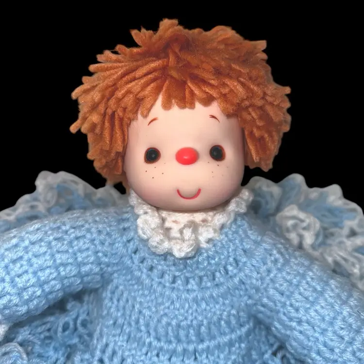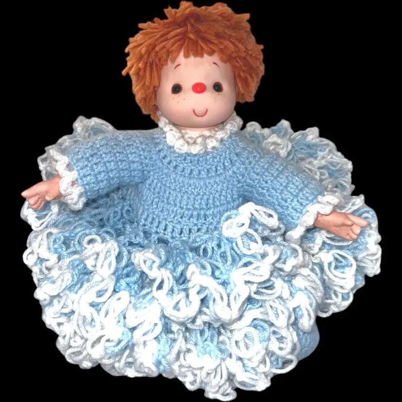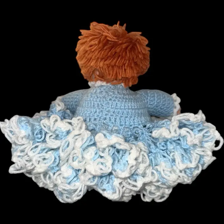 Very clean; hand crocheted with a VERY full, fluffy skirt; excellent condition