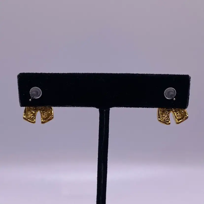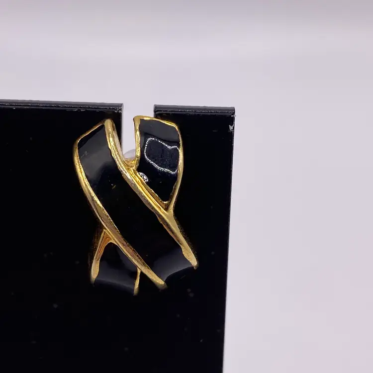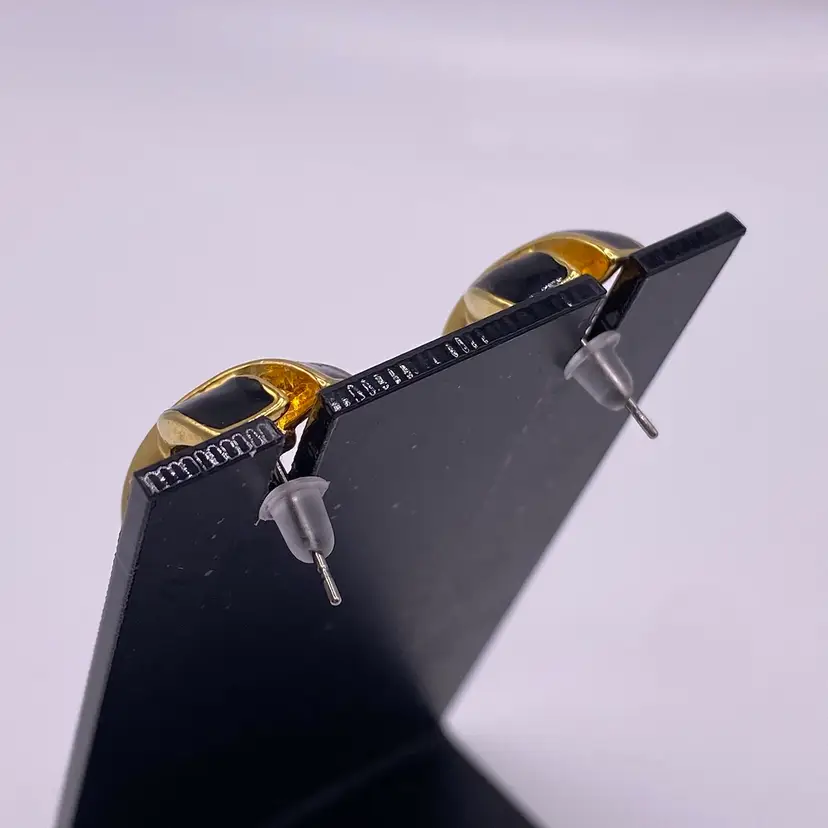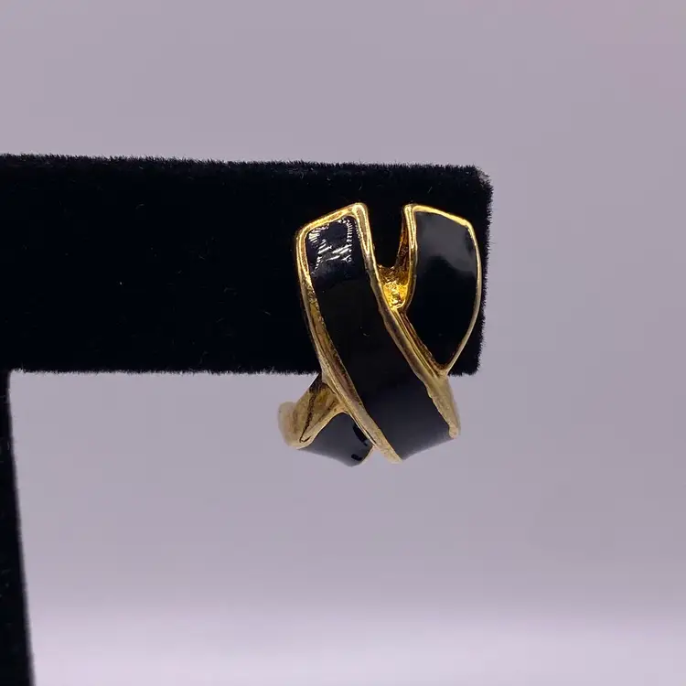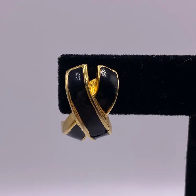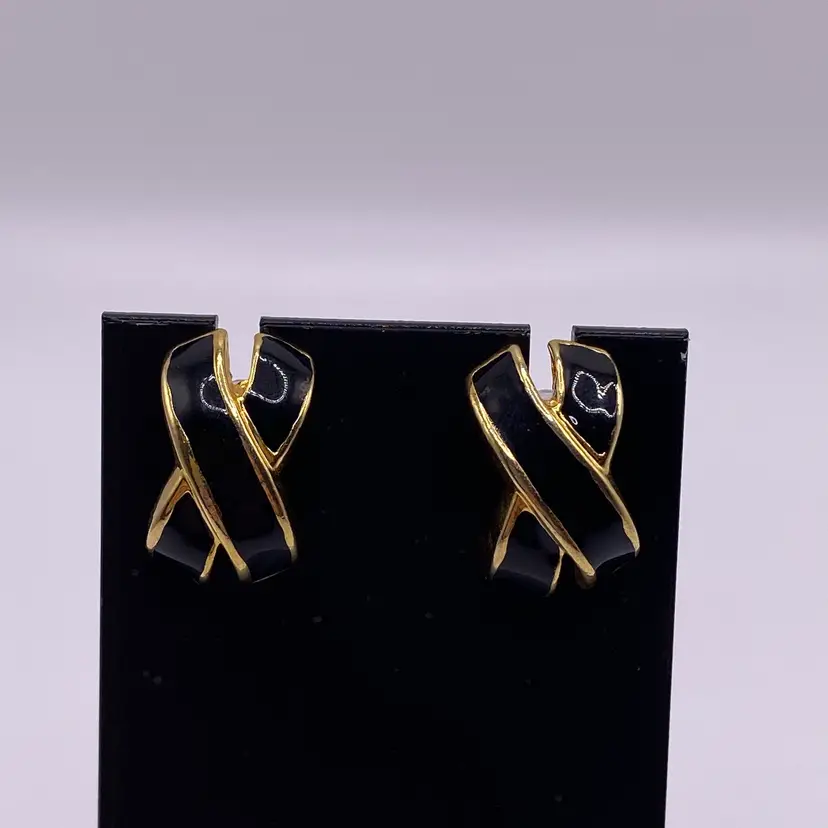 Add a touch of elegance to your outfit with these stunning black enamel criss cross post earrings. With a gold tone metal finish, these earrings are perfect for any casual or formal occasion. The unique cross shape and stud style make them a beautiful addition to your jewelry collection.